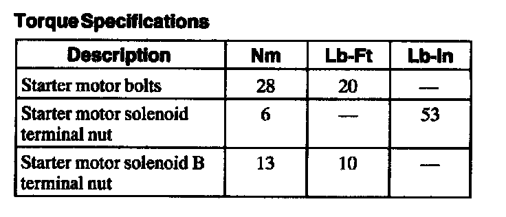 Torque Specifications: