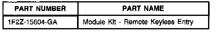 2. If normal diagnostics cannot pinpoint the condition, replace the remote keyless entry (RKE) module with Service Part 1F2Z-15604-GA. Be sure to program all the customers key FOBs to the new module.