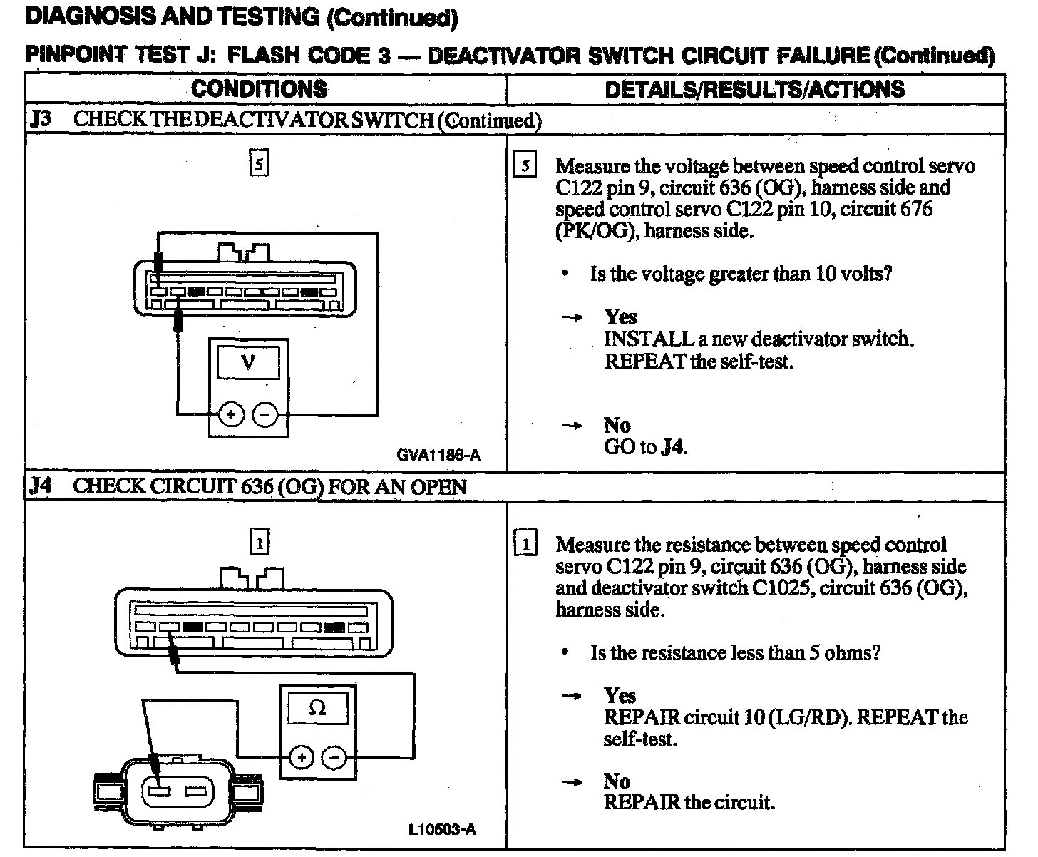 Test J: Flash Code 3 - Deactivator Switch Circuit Failure
