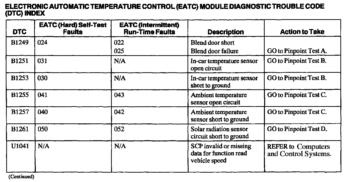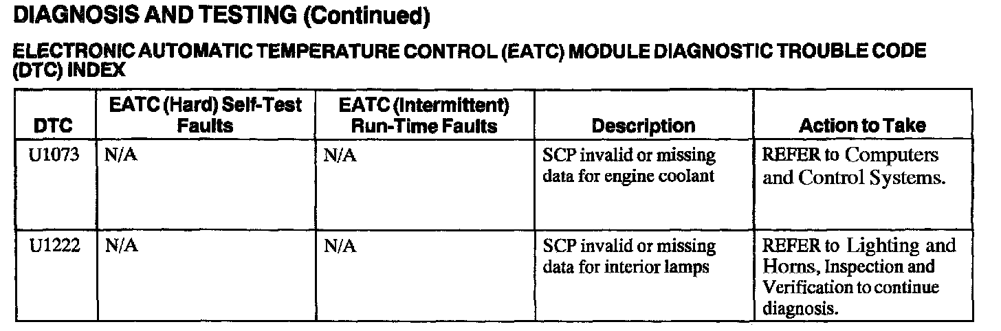 EATC Module Diagnostic Trouble Code (DTC) Index