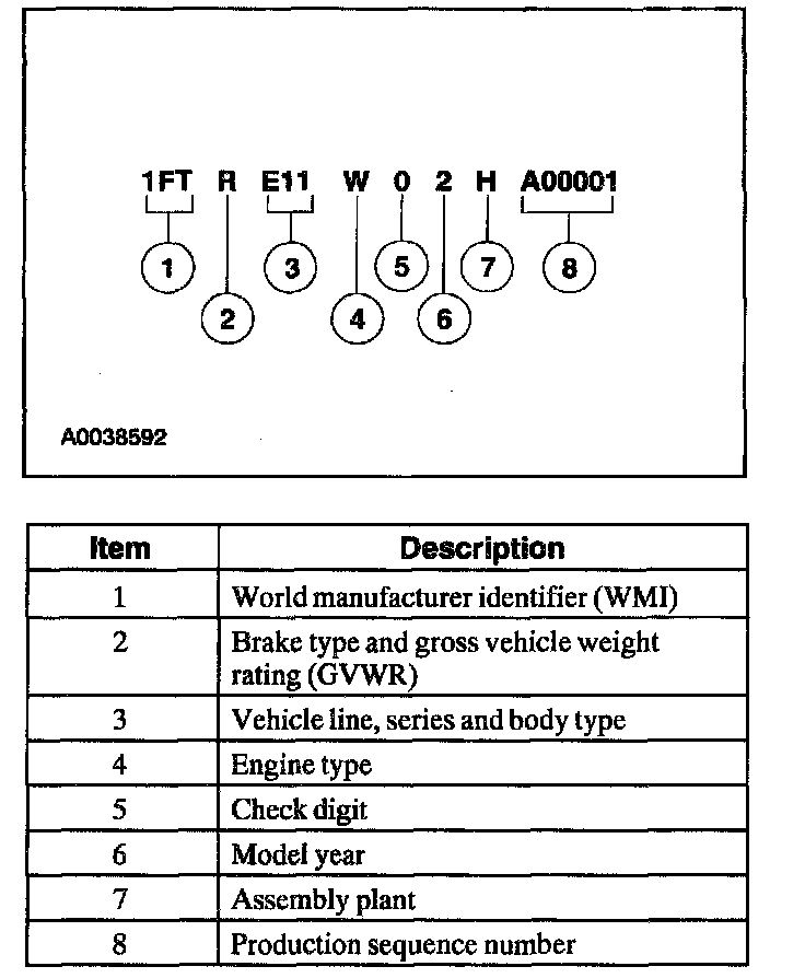 Positions 5 through 7 indicate vehicle line, series and body type.