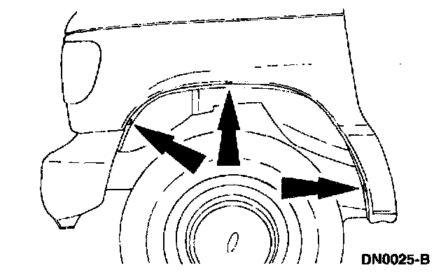 2. Remove the screws at the lower edge of the front fender securing the splash shield.
