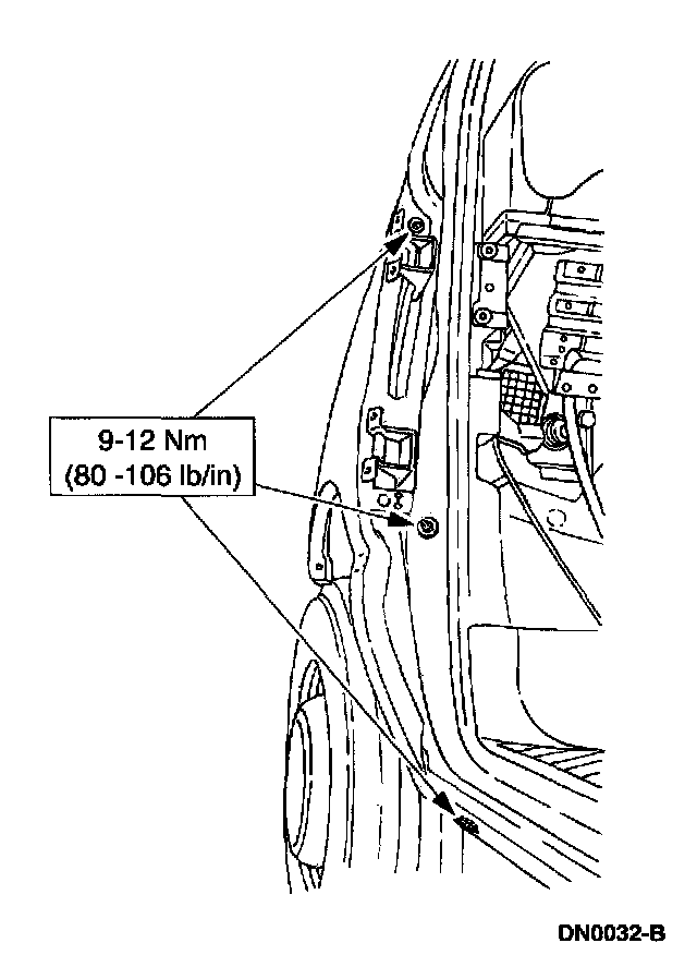 3. With the front door open, remove the fender-to-cowl side brackets retaining bolts, and the bolt and shims securing the lower rear of the fender.