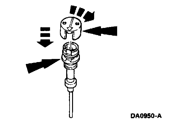 1. Install the Synchronizer Alignment Gauge on the camshaft synchronizer by rotating the tool until it engages the notch in the camshaft synchronizer housing.