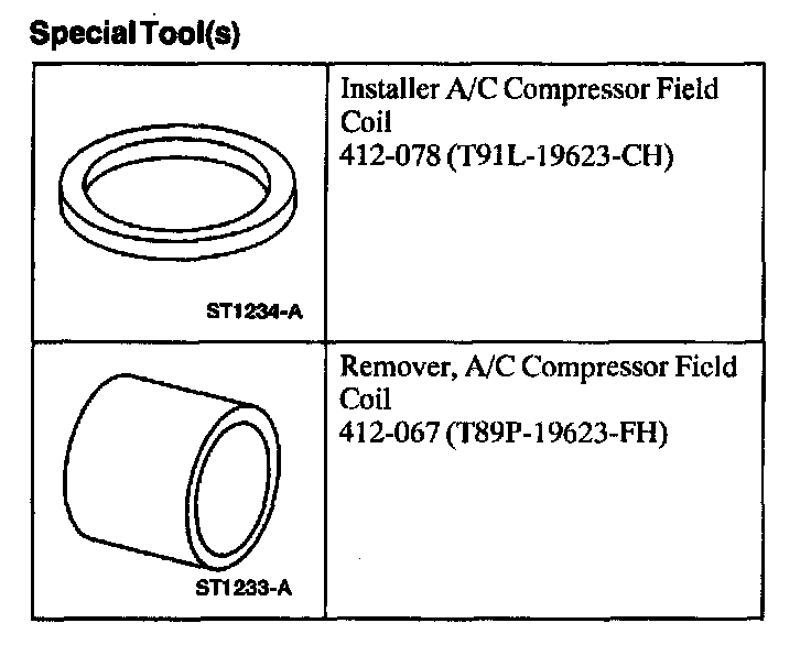 2 Place the special tool on the A/C clutch field coil.
