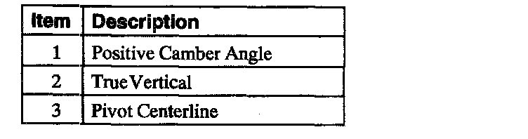 A backward tilt is positive (+) and a forward tilt is negative (-). Front caster adjustment is not a separate procedure on this vehicle. Front caster should fall within specification when the front camber is adjusted.