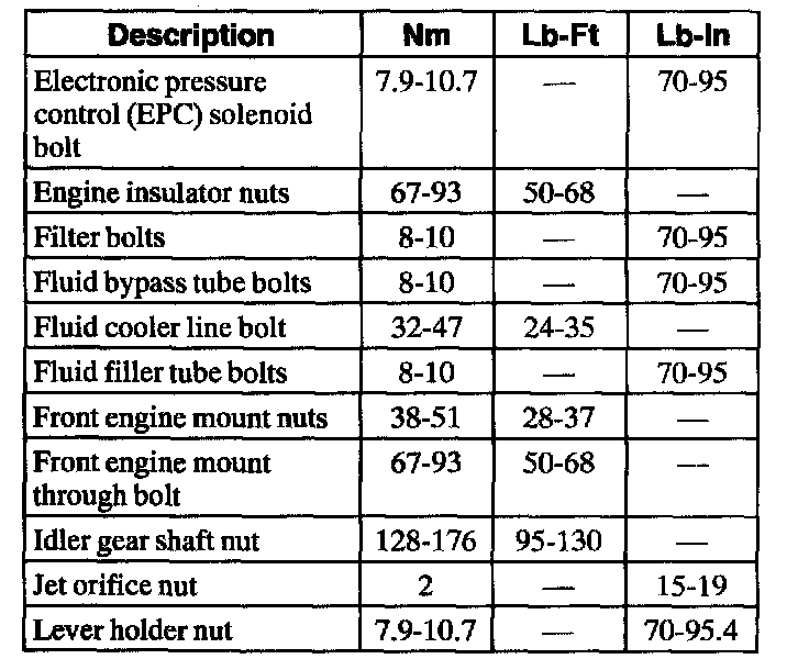Automatic Transaxle/Transmission1 Refer to procedure for spring specifications.