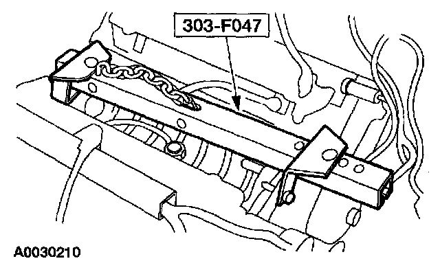 6. CAUTION: Use care when lowering the engine, to prevent damage to the oil pump screen and pickup tube.
