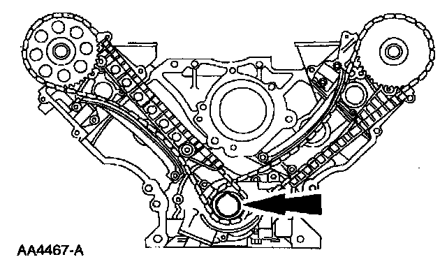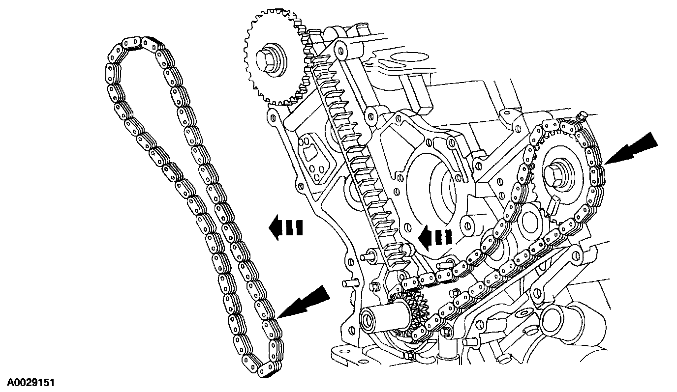 ^ Remove the LH timing chain and crankshaft sprocket.