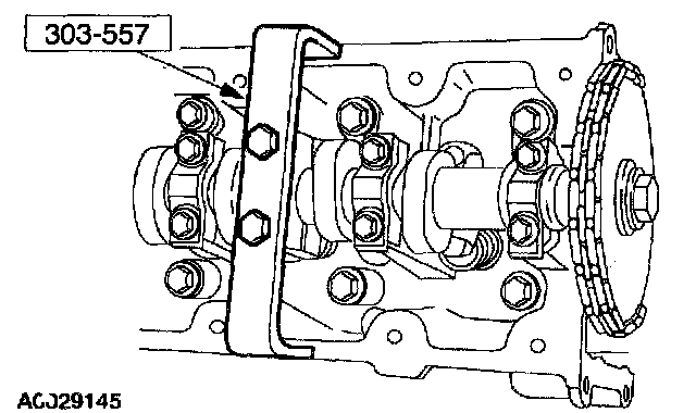 30. CAUTION: Unless otherwise instructed, at no time when the timing chains are removed and the cylinder heads are installed is the crankshaft or camshaft to be rotated. Severe piston and valve damage will occur.