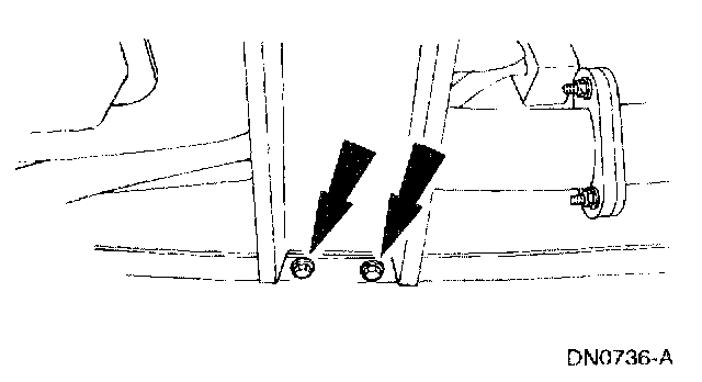 8. Remove the transmission support crossmember nuts and bolts (LH side).