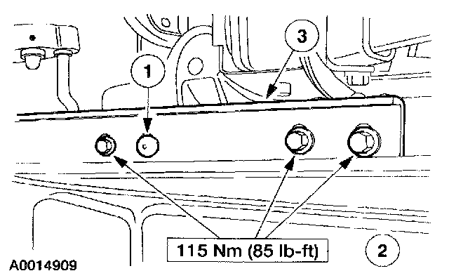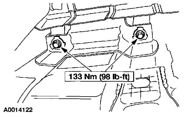 3. CAUTION: New shear bolts with the same part number must be installed. Do not use fasteners of lesser quality or substitute design. Torque values must be used as specified during installation to ensure correct retention of the trailer hitch.