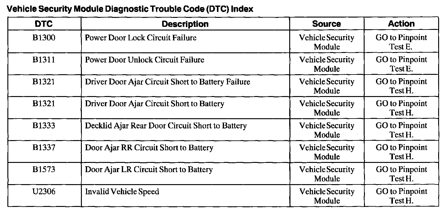 DTC Index B1300 - U2306: