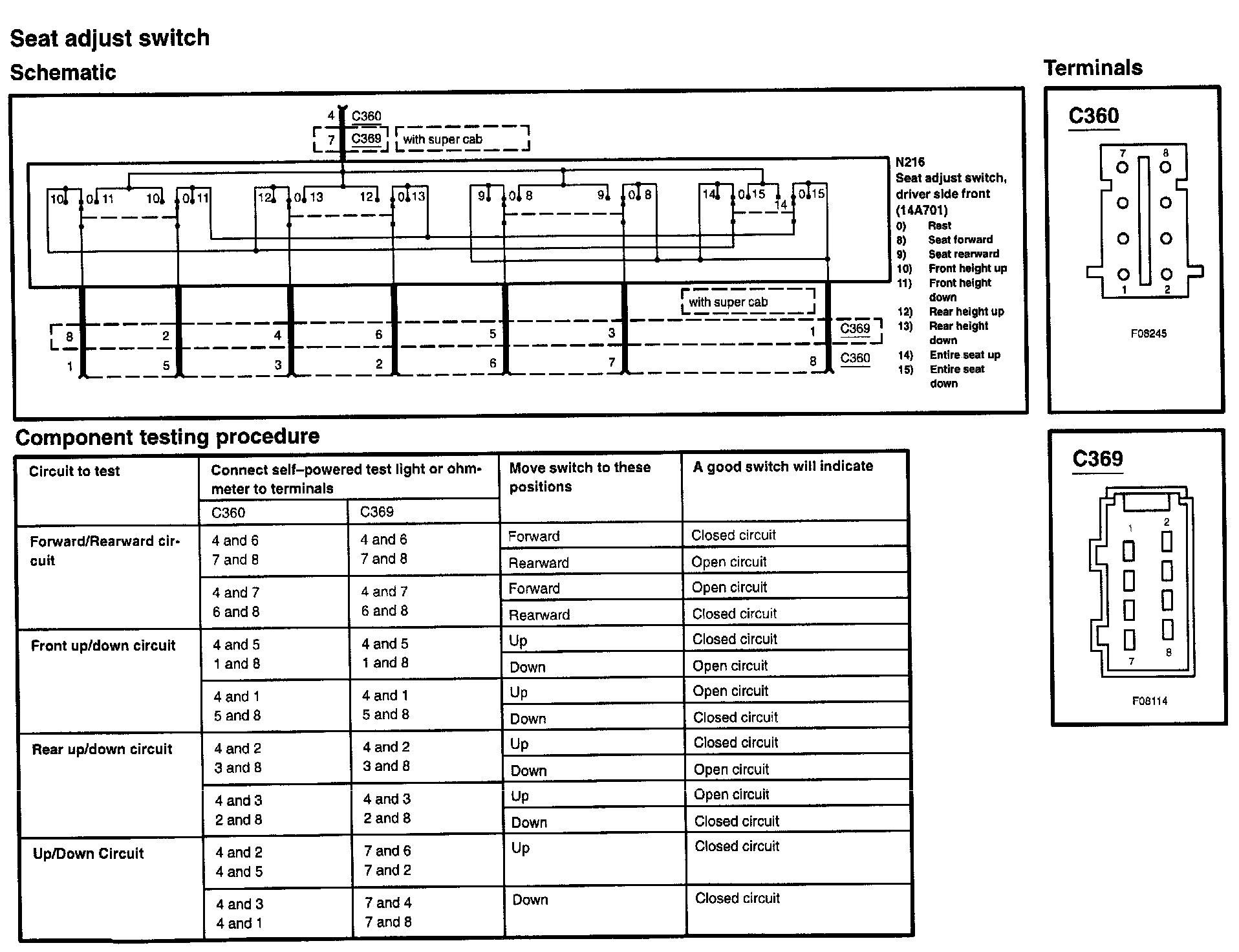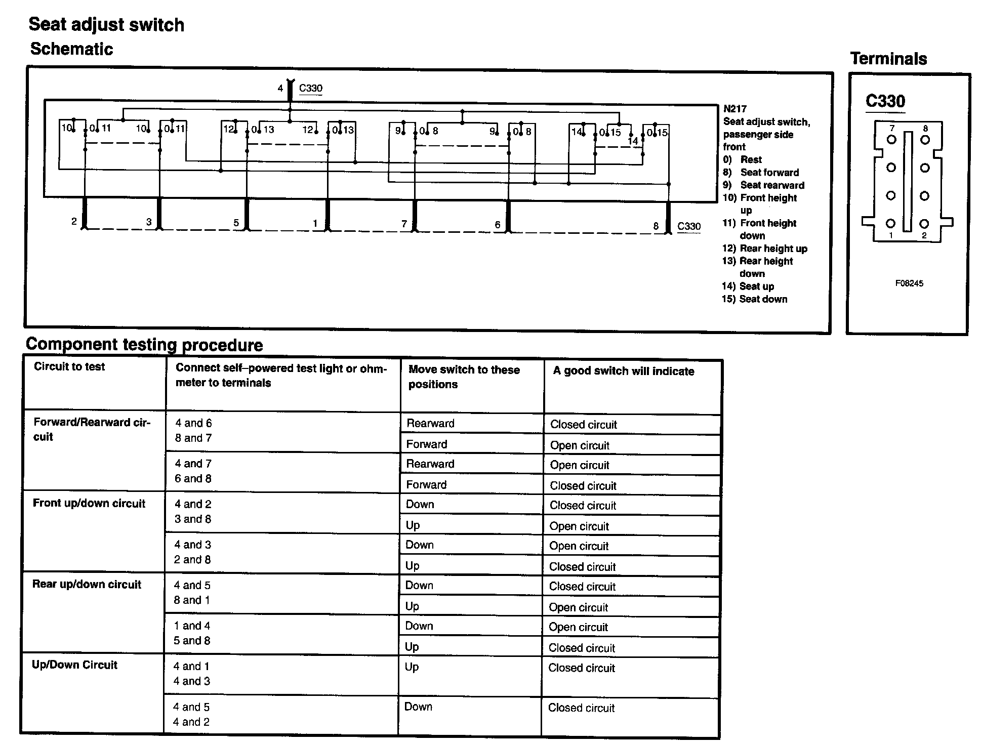 Power Seat Switch: Testing and Inspection