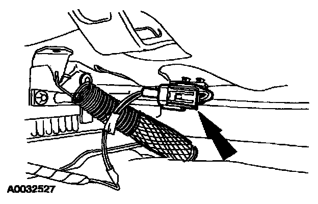 6. Remove the restraint system diagnostic tool from the passenger side safety belt retractor pretensioner floor electrical connector.