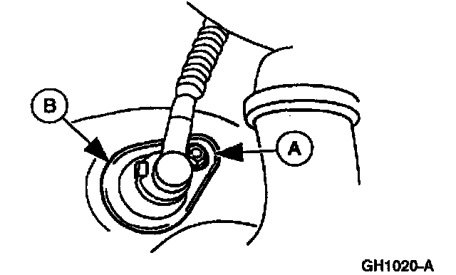 3. Remove the (A) front anti-lock brake sensor bolt and the (B) front anti-lock brake sensor.