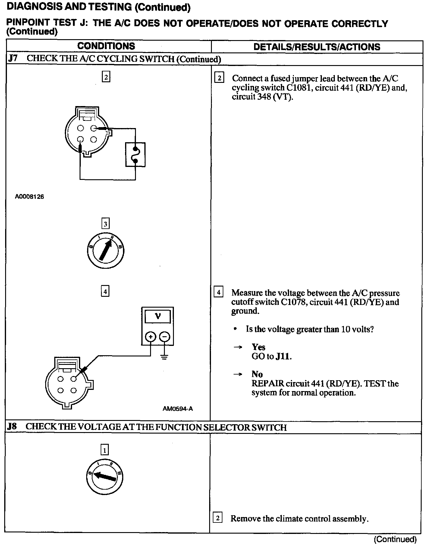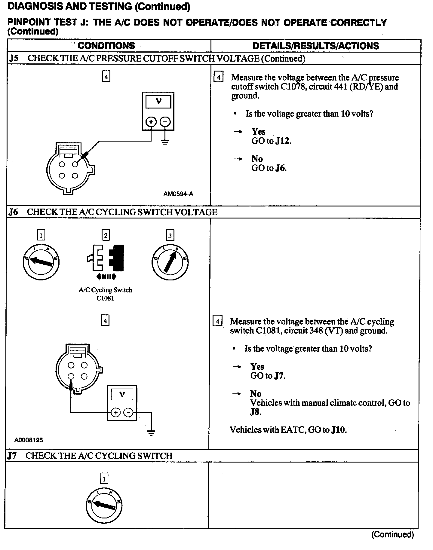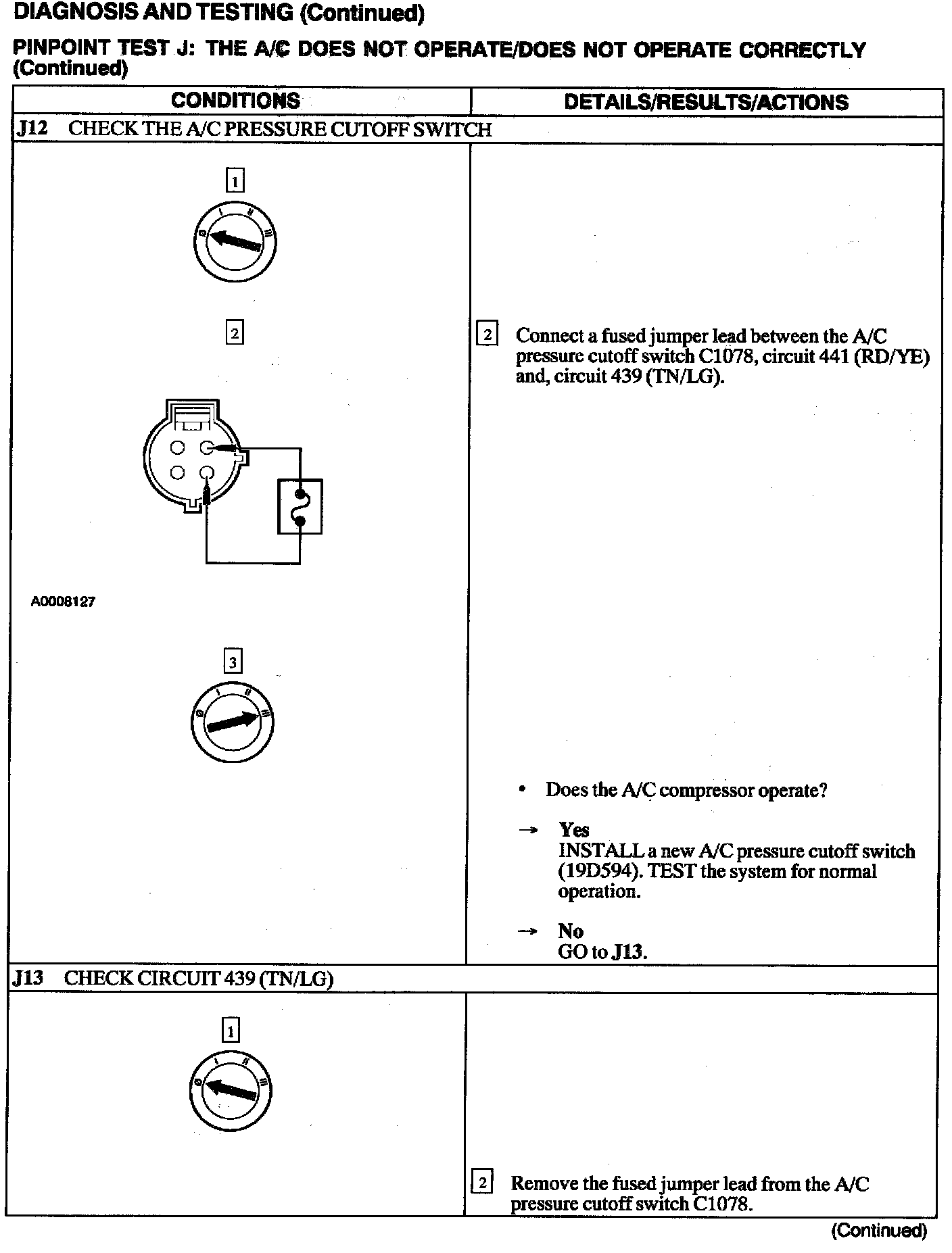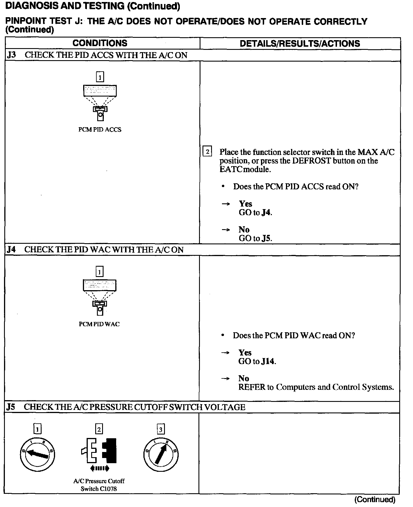 Test J: A/C Does Not Operate/does Not Operate Correctly