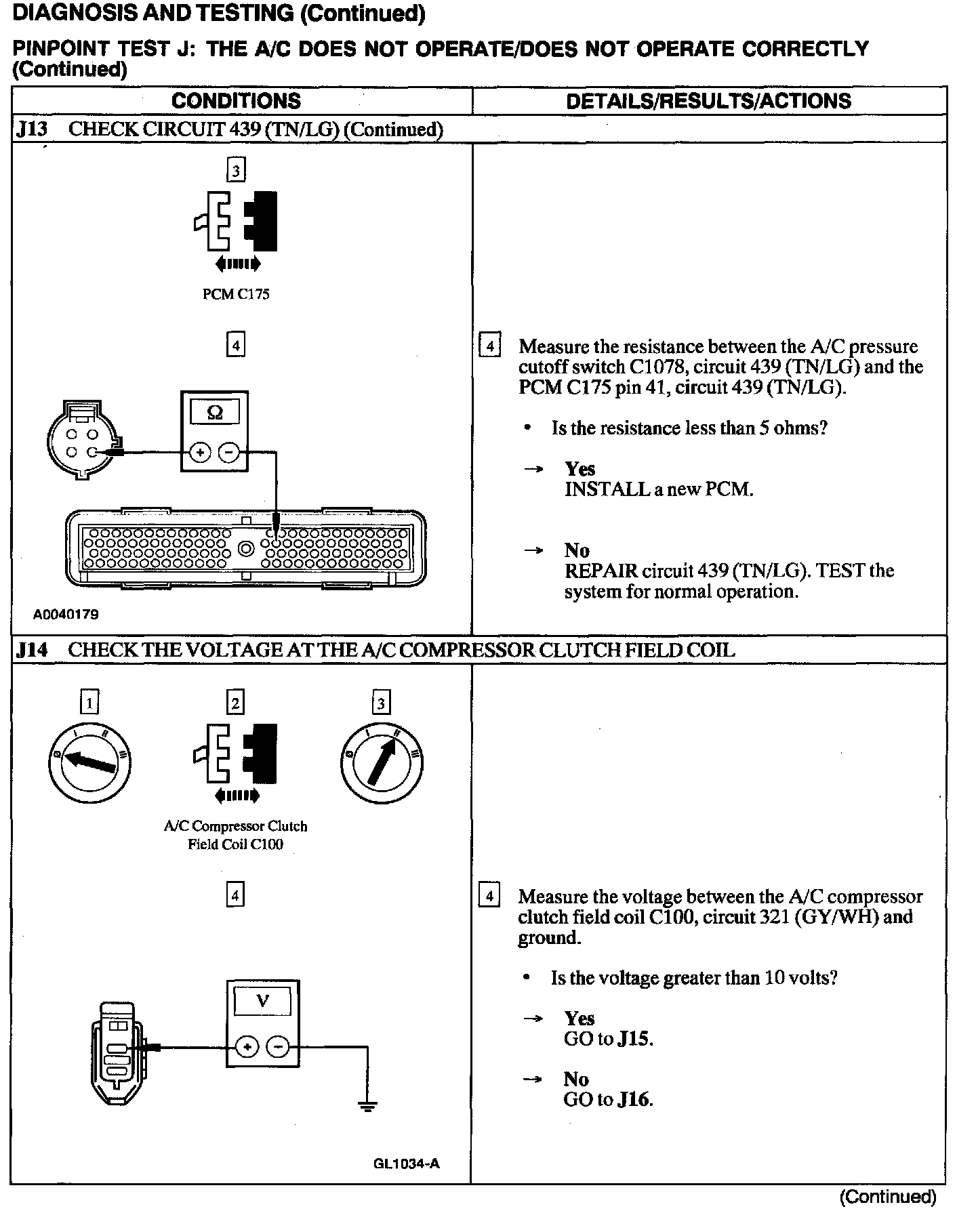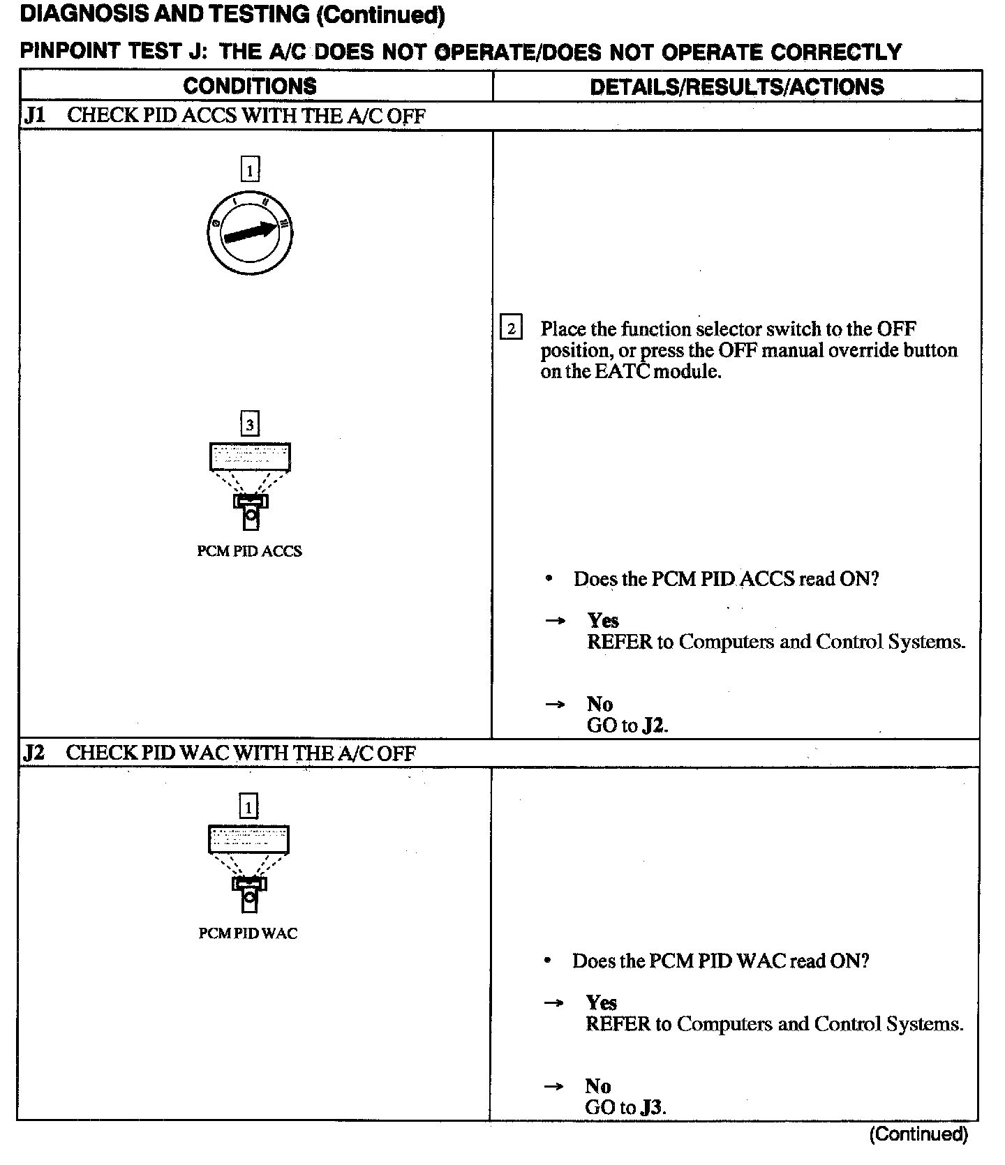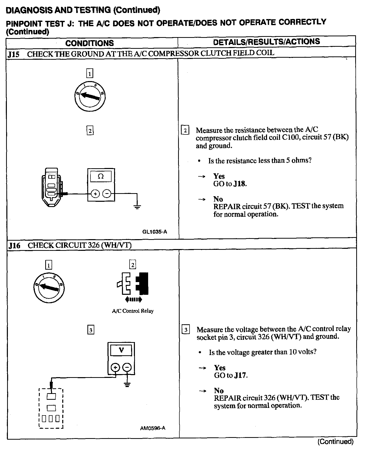 Test J: A/C Does Not Operate/does Not Operate Correctly
