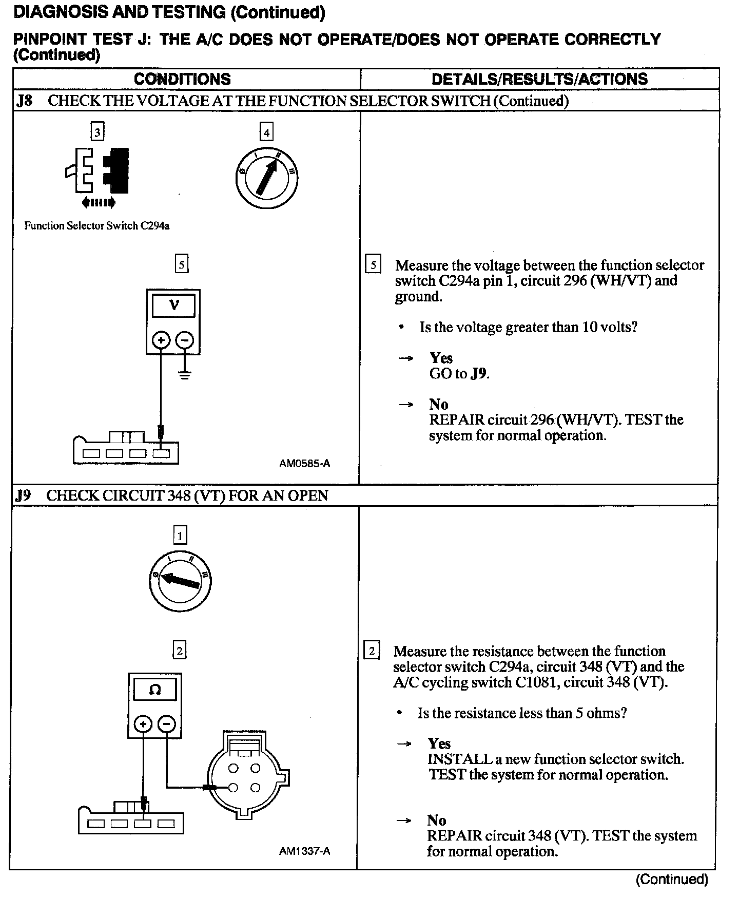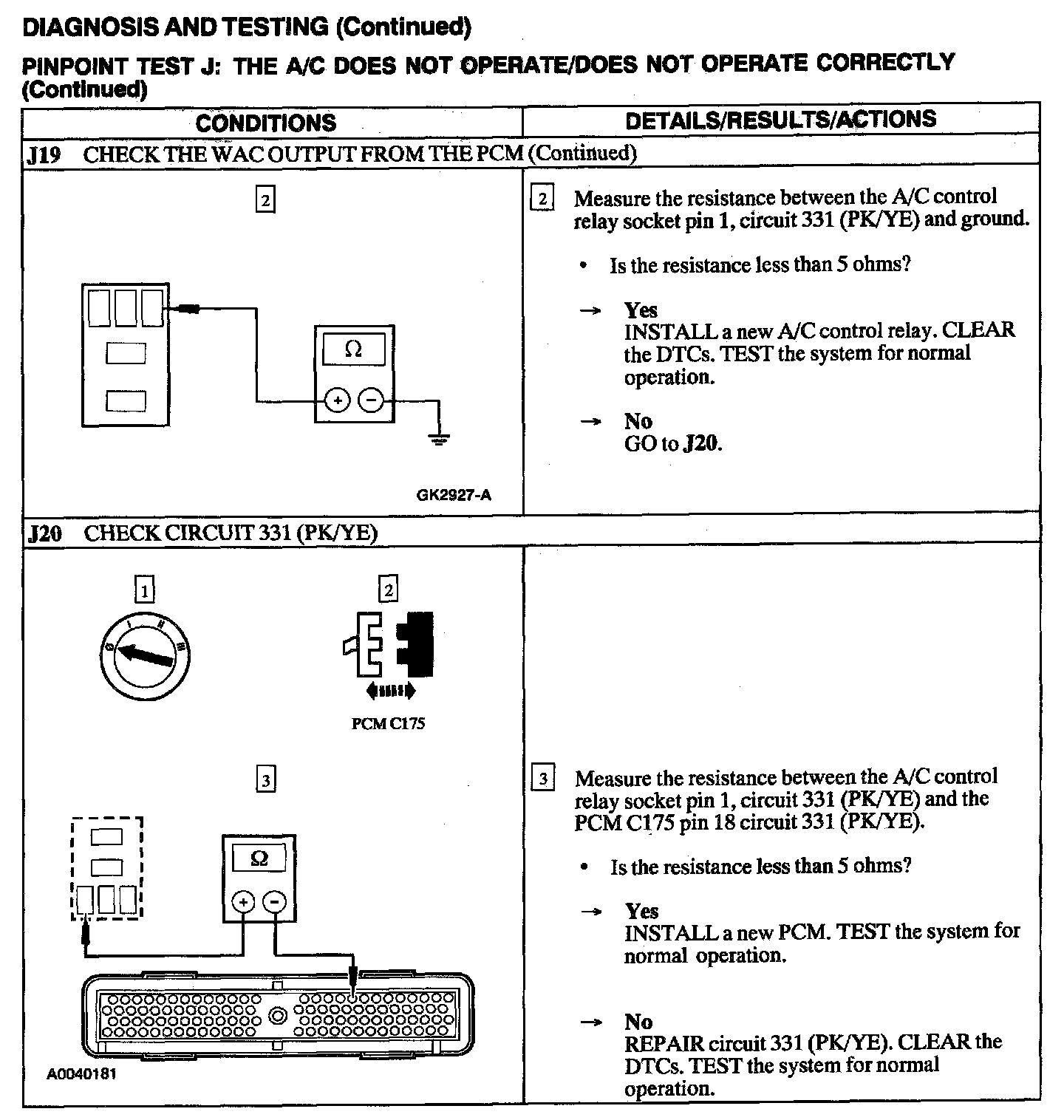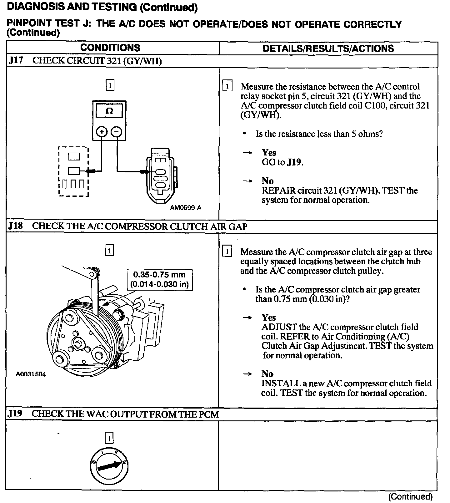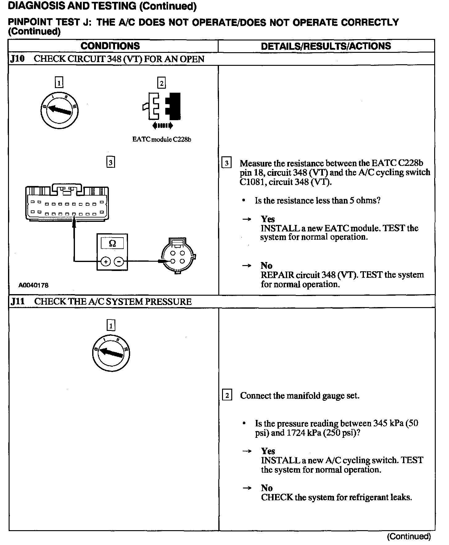 Test J: A/C Does Not Operate/does Not Operate Correctly