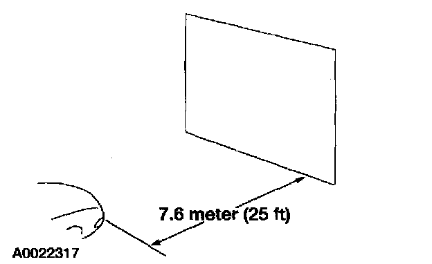 3. Park the vehicle on a level surface approximately 7.6 meters (25 ft) from the vertical wall or screen directly in front of it.