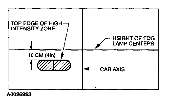 4. The correct visual aim for the fog lamps is with the top edge of the high-intensity zone 10 cm (4 in) below the horizontal center of the fog lamps.