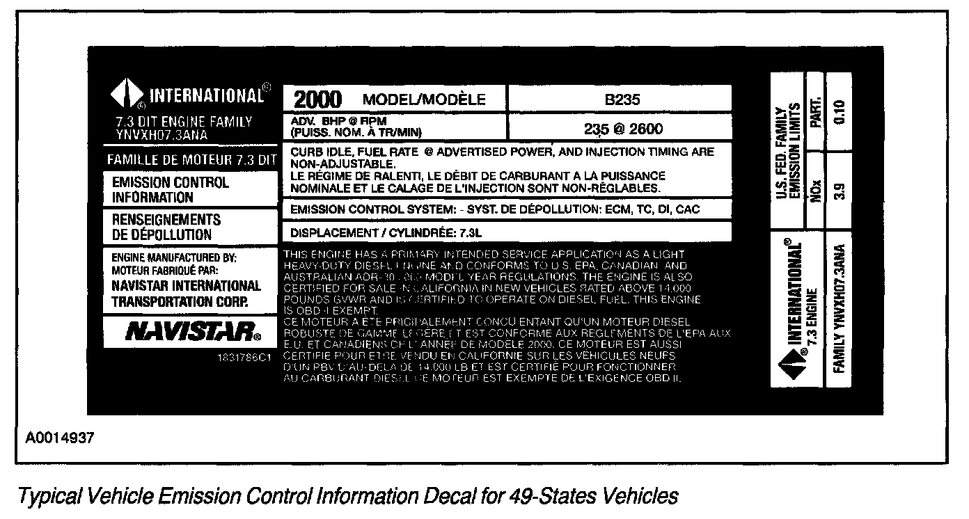 Each vehicle has a decal containing emission control information that applies specifically to the vehicle and engine.