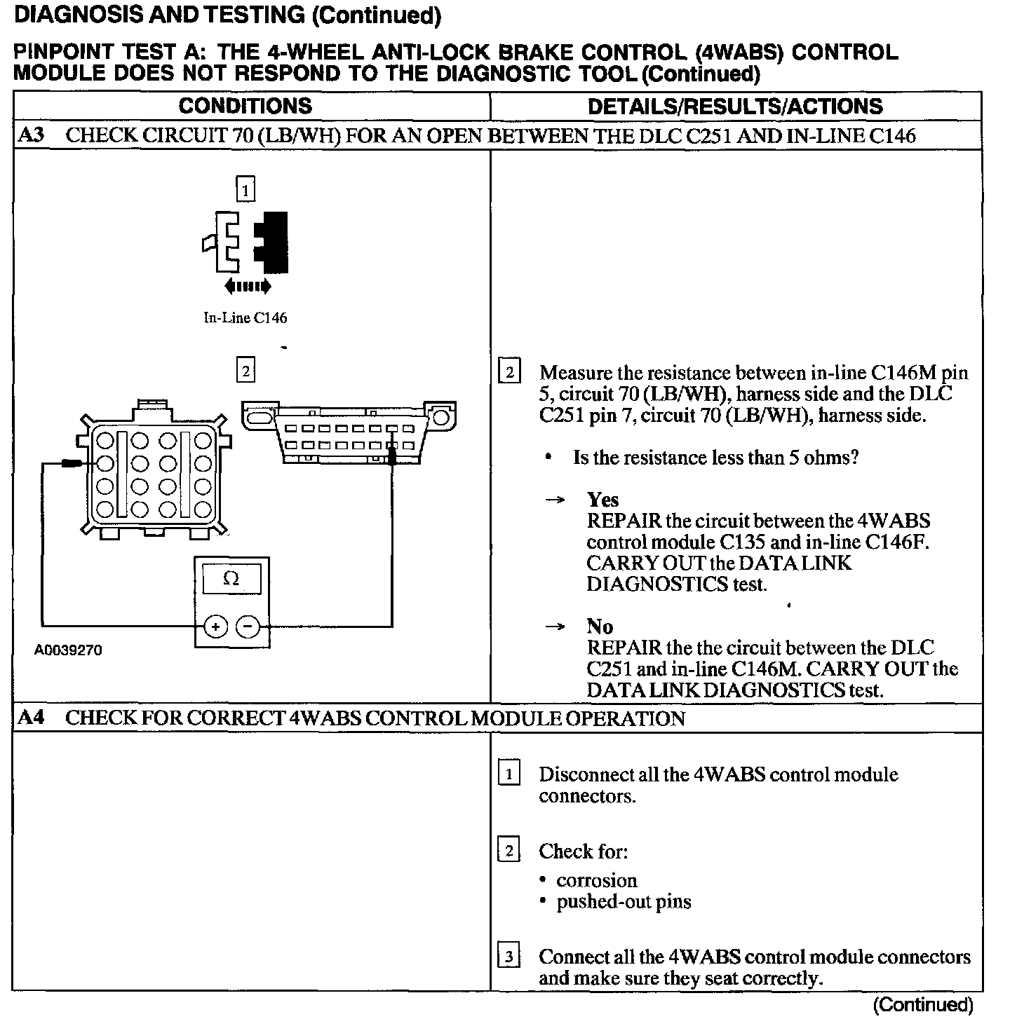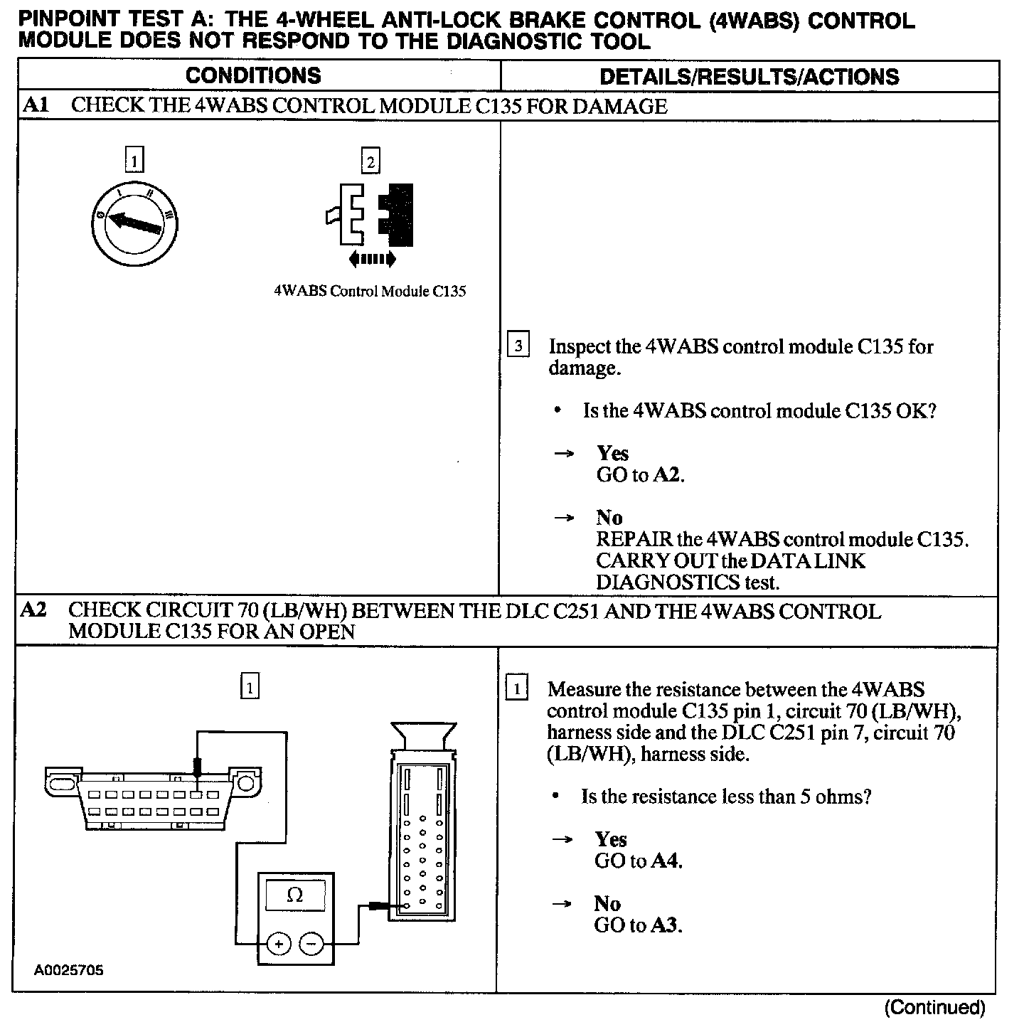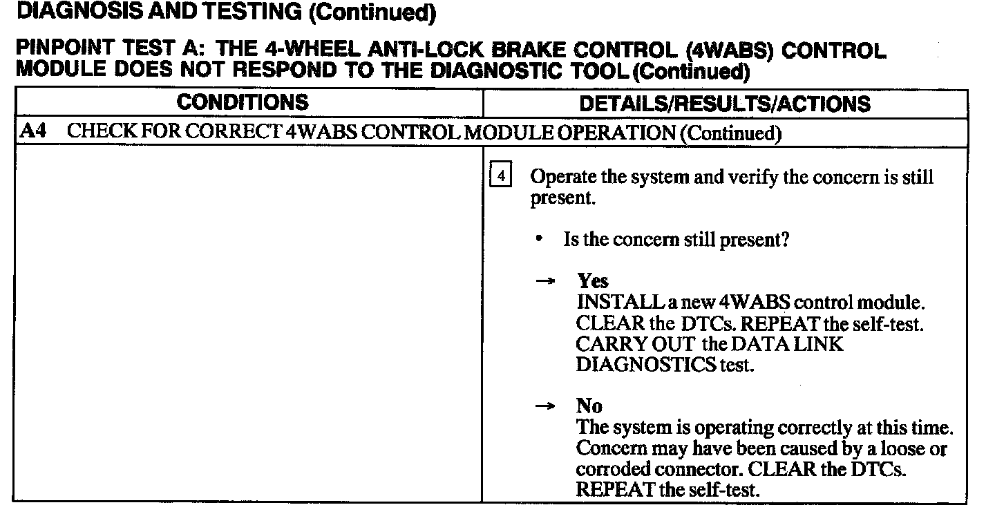Test A: 4WABS Control Module Does Not Respond to Diagnostic Tool