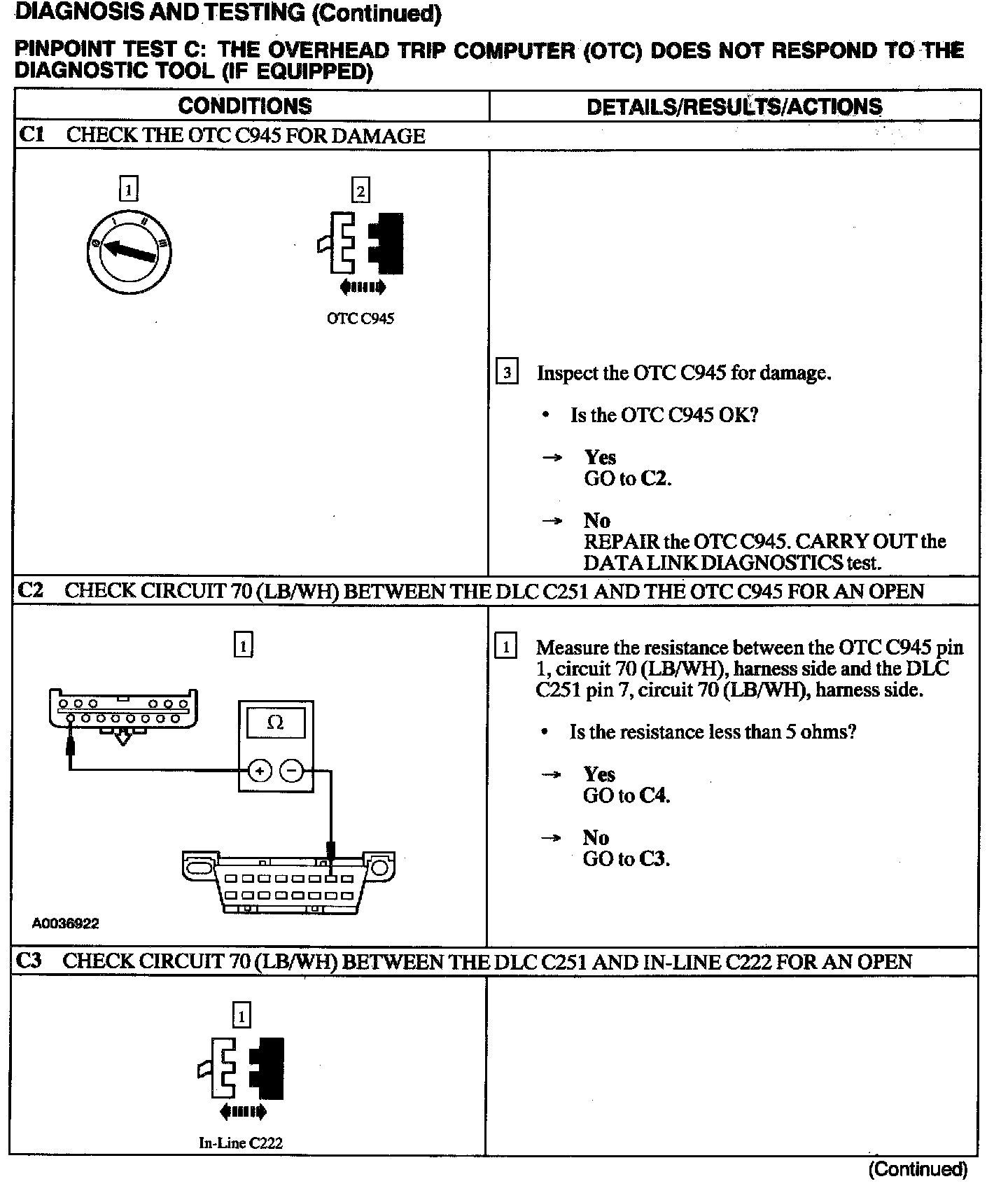 Test C: Overhead Trip Computer Does Not Respond to Diagnostic Tool