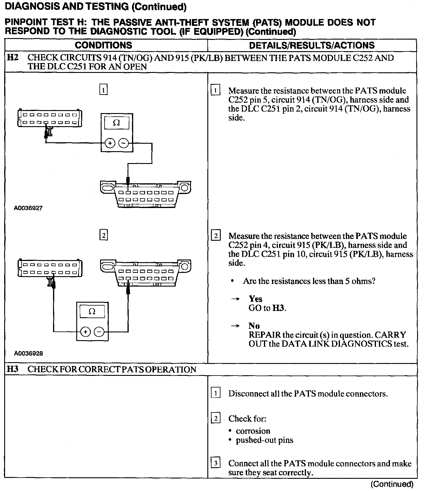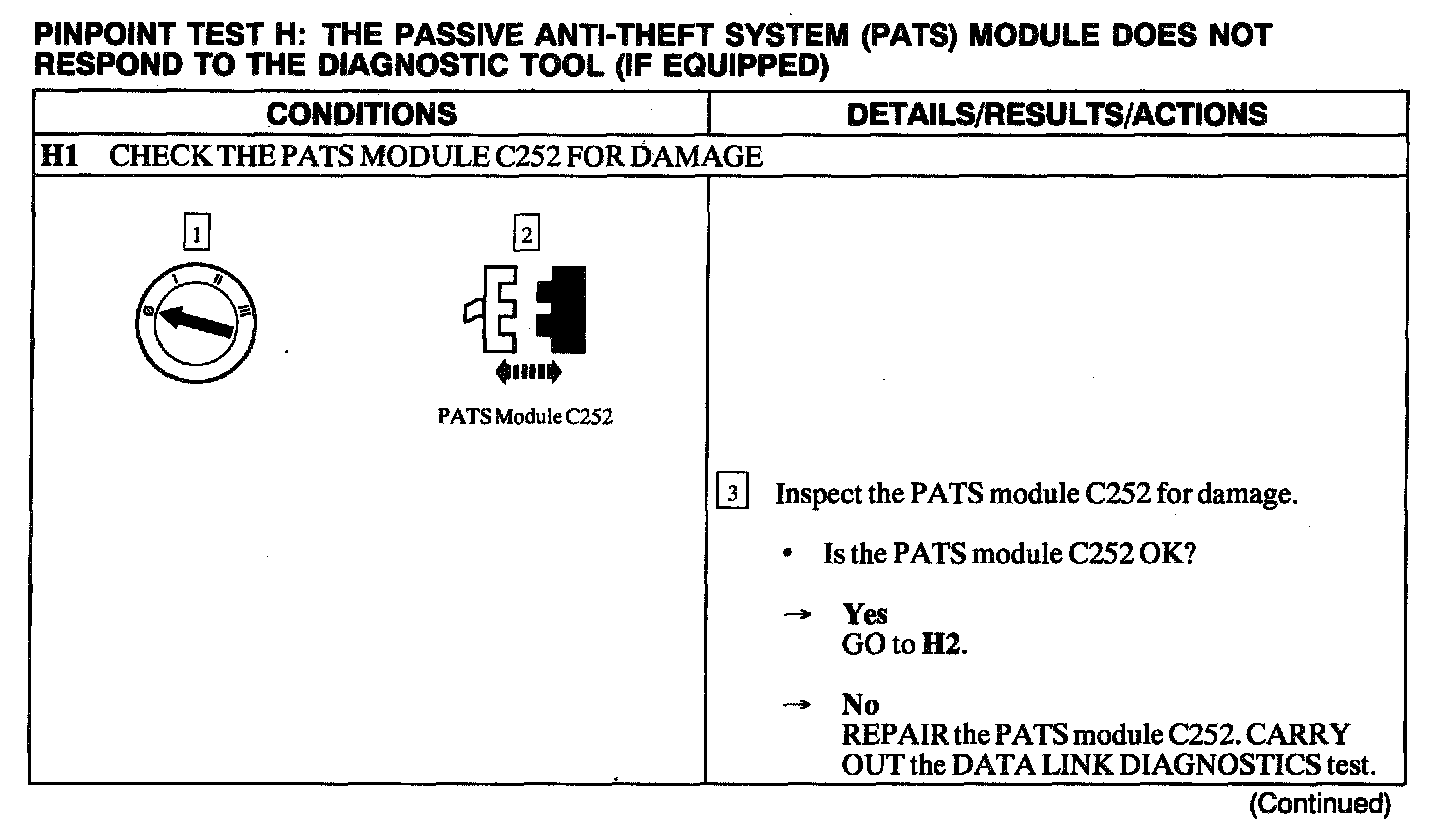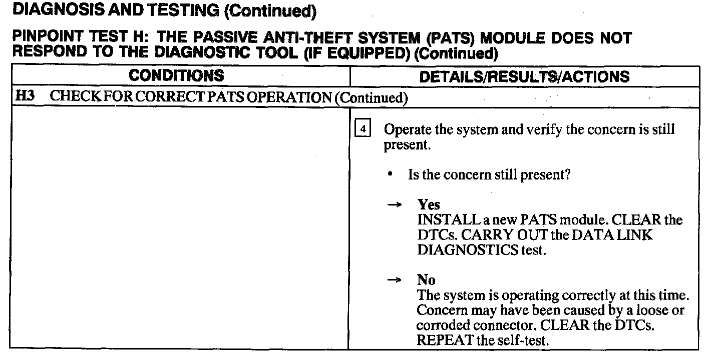 Test H: PATS Module Does Not Respond To The Diagnostic Tool