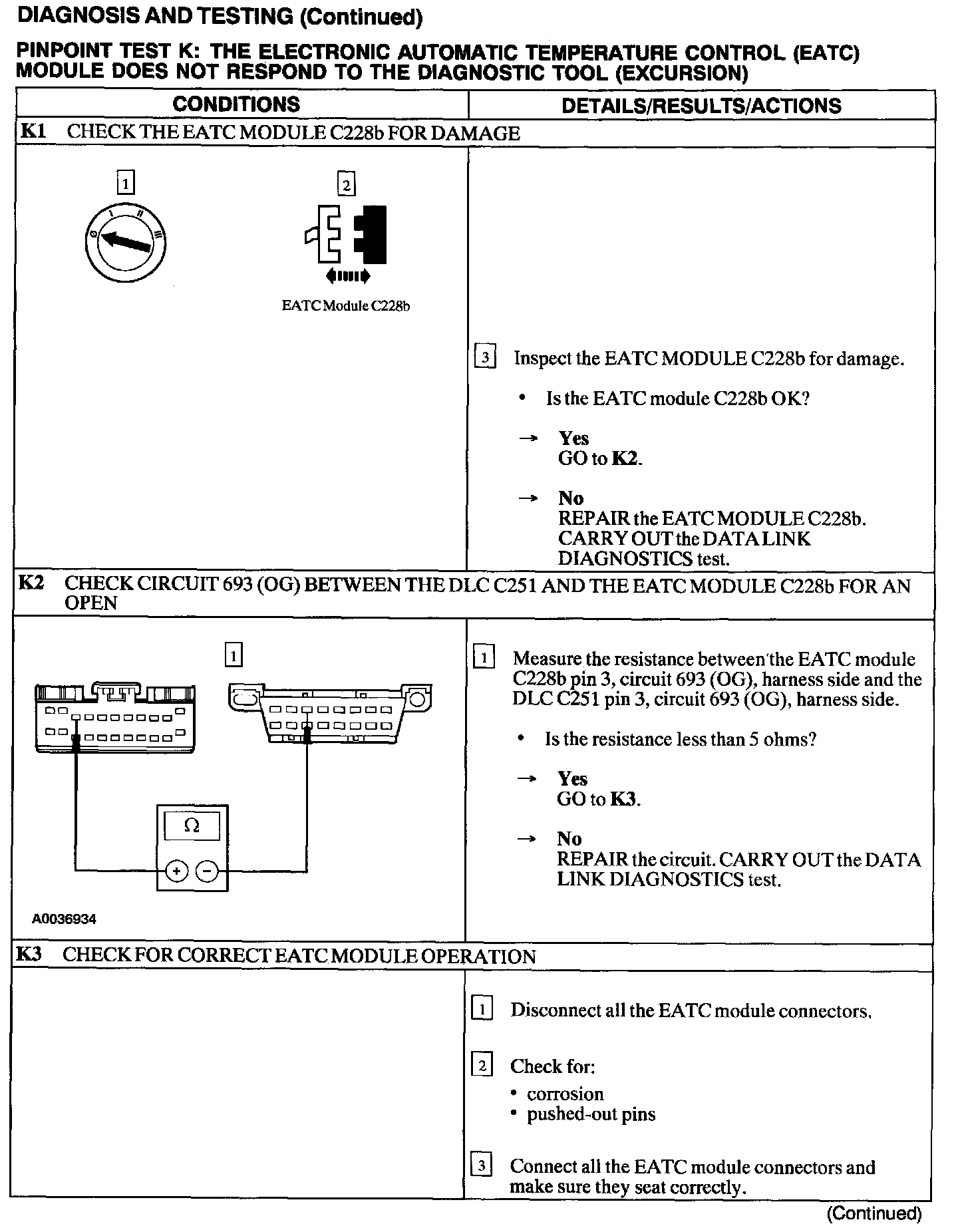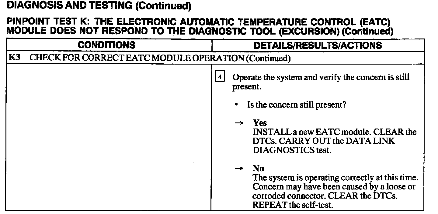 Test K: EATC Module Does Not Respond To The Diagnostic Tool