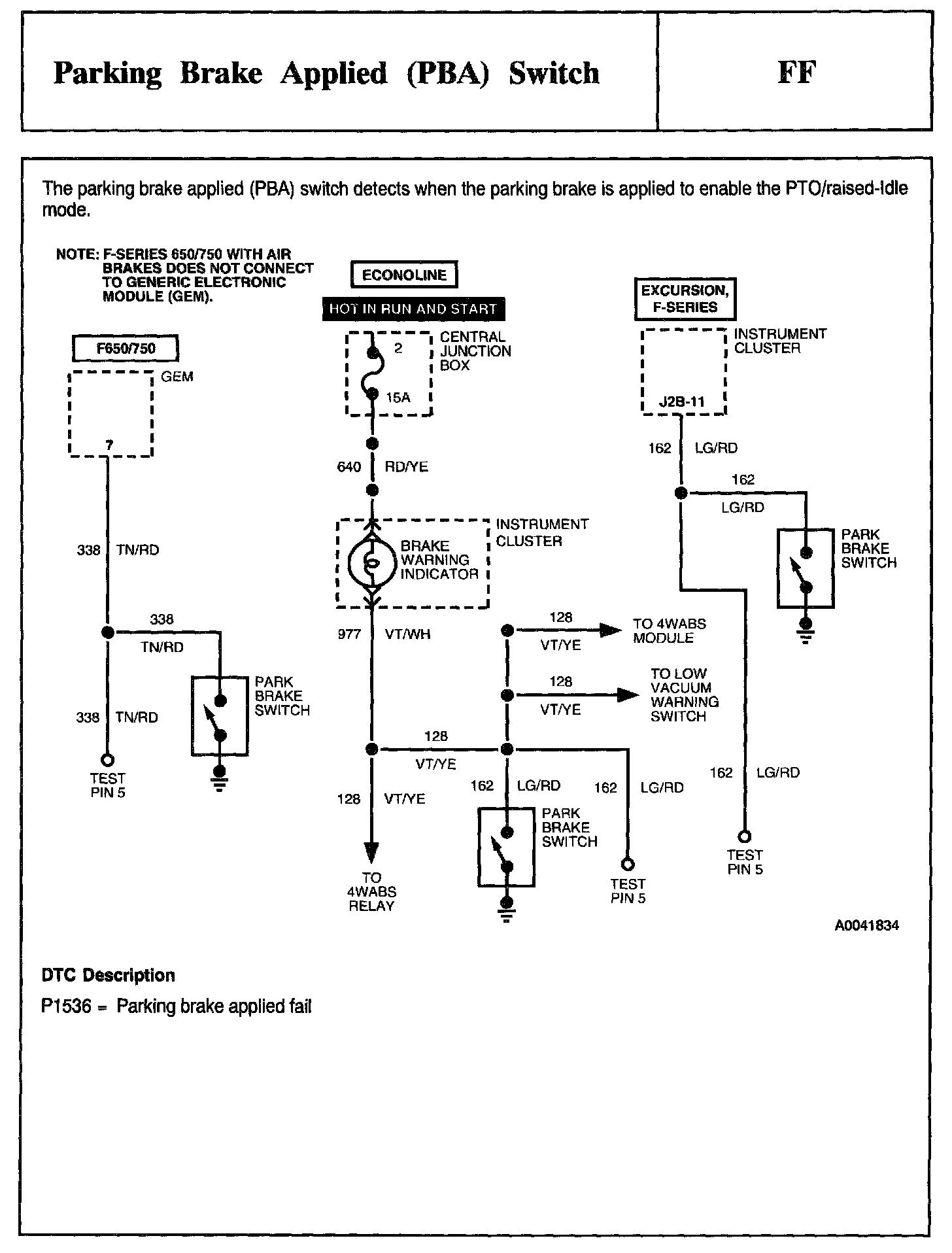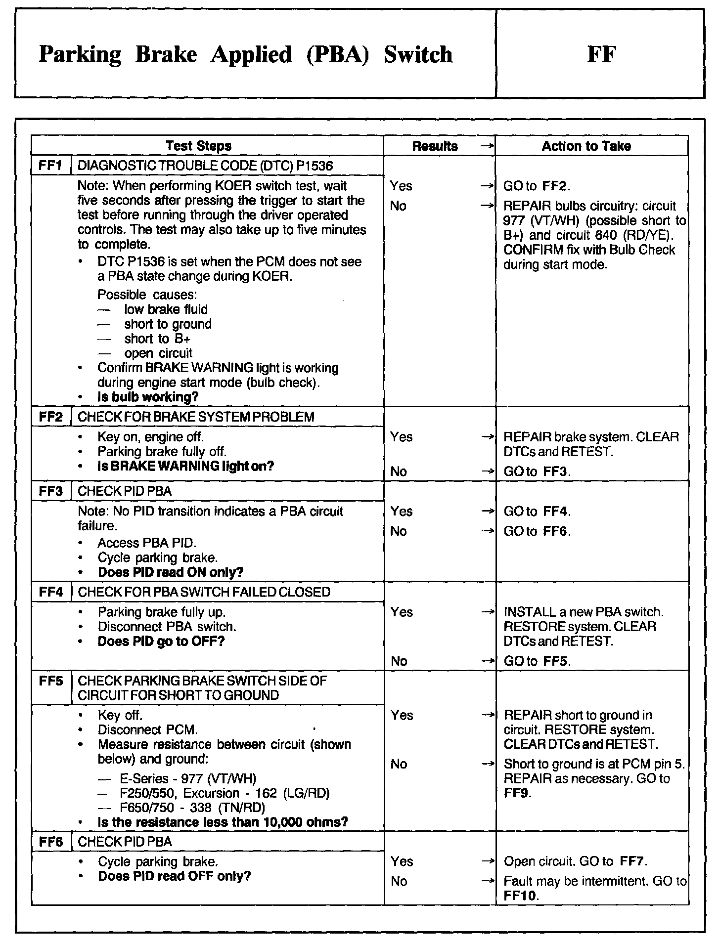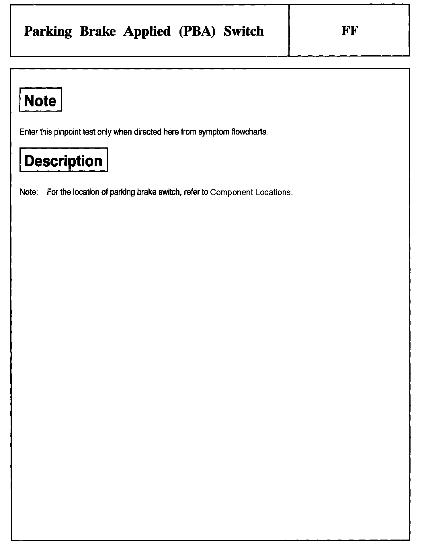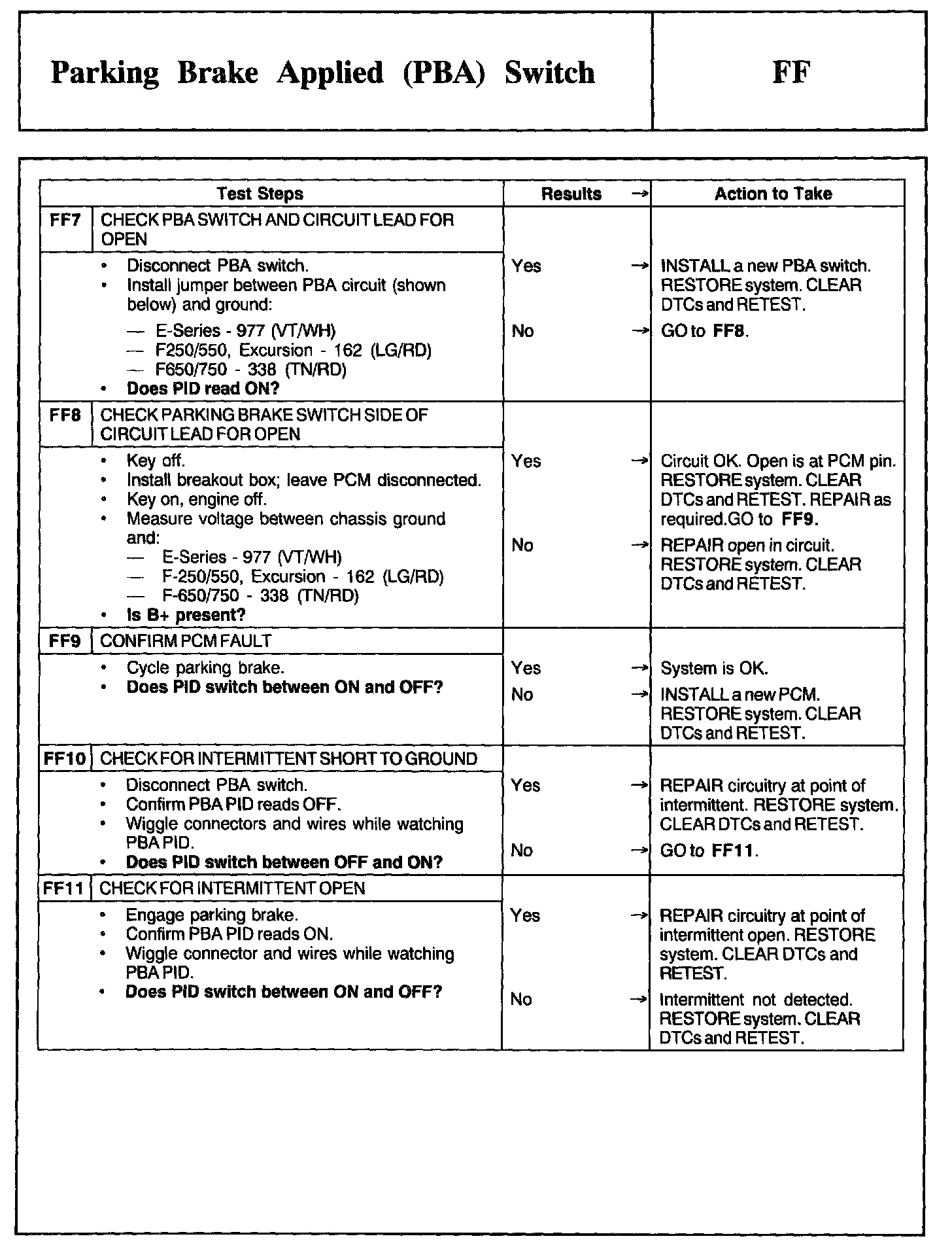Tests FF: Parking Brake Applied (PBA) Switch