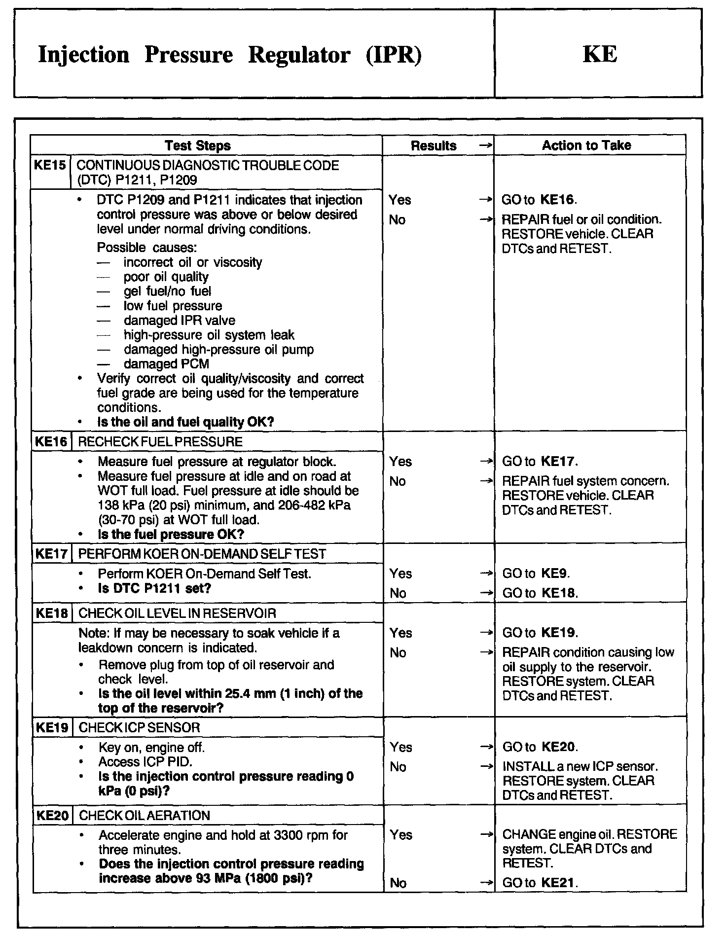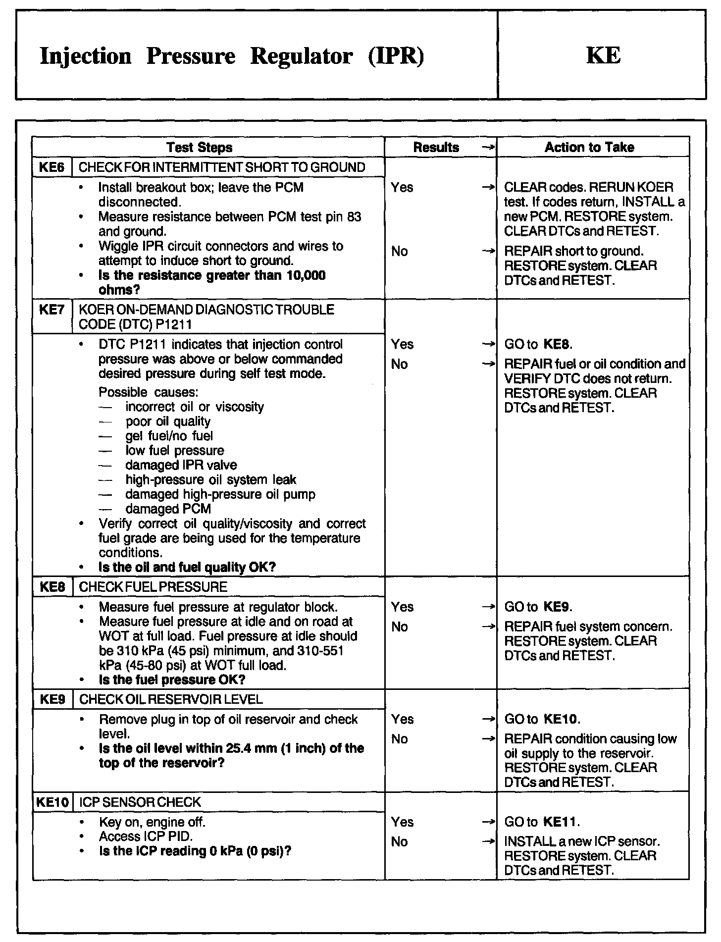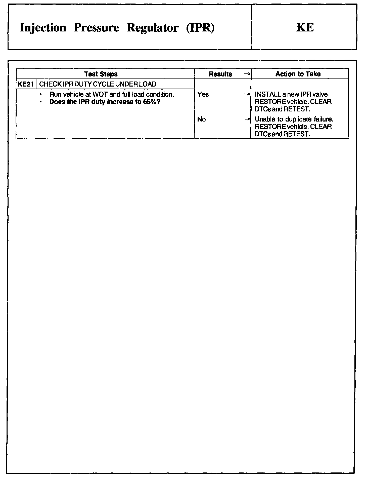 Tests KE: Injection Pressure Regulator (IPR)