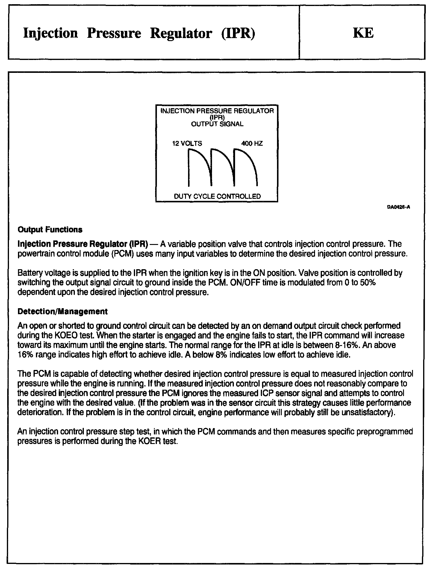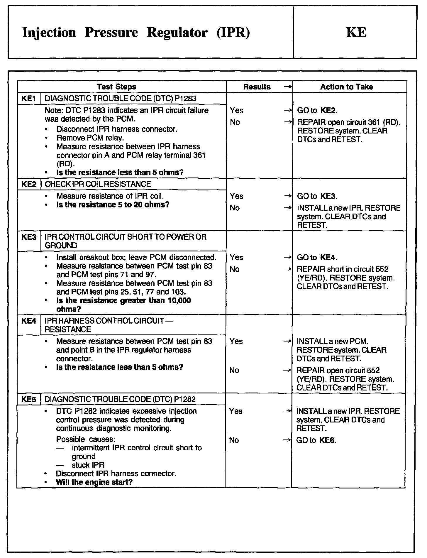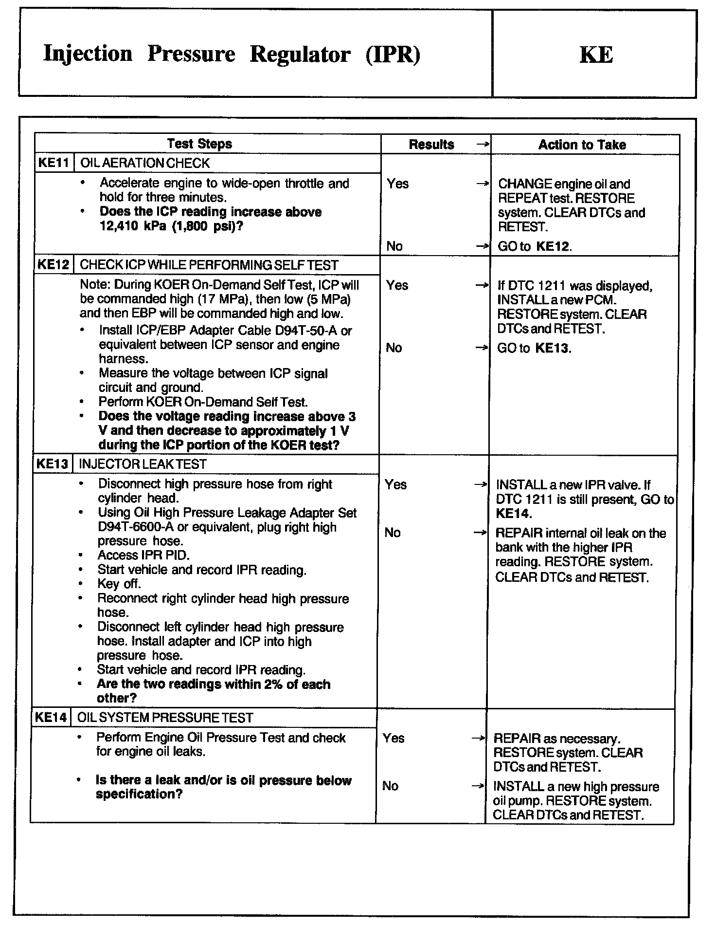 Tests KE: Injection Pressure Regulator (IPR)