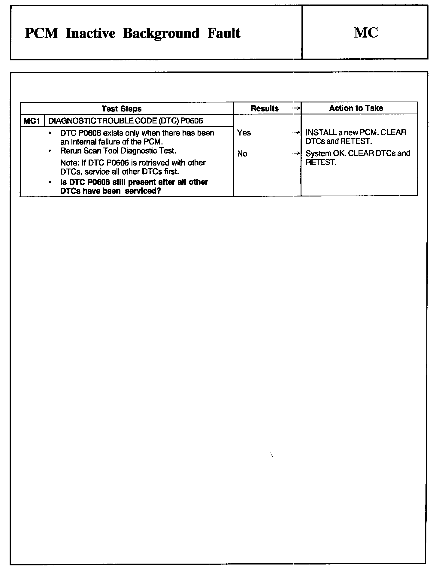Tests MC: PCM Inactive Background Fault
