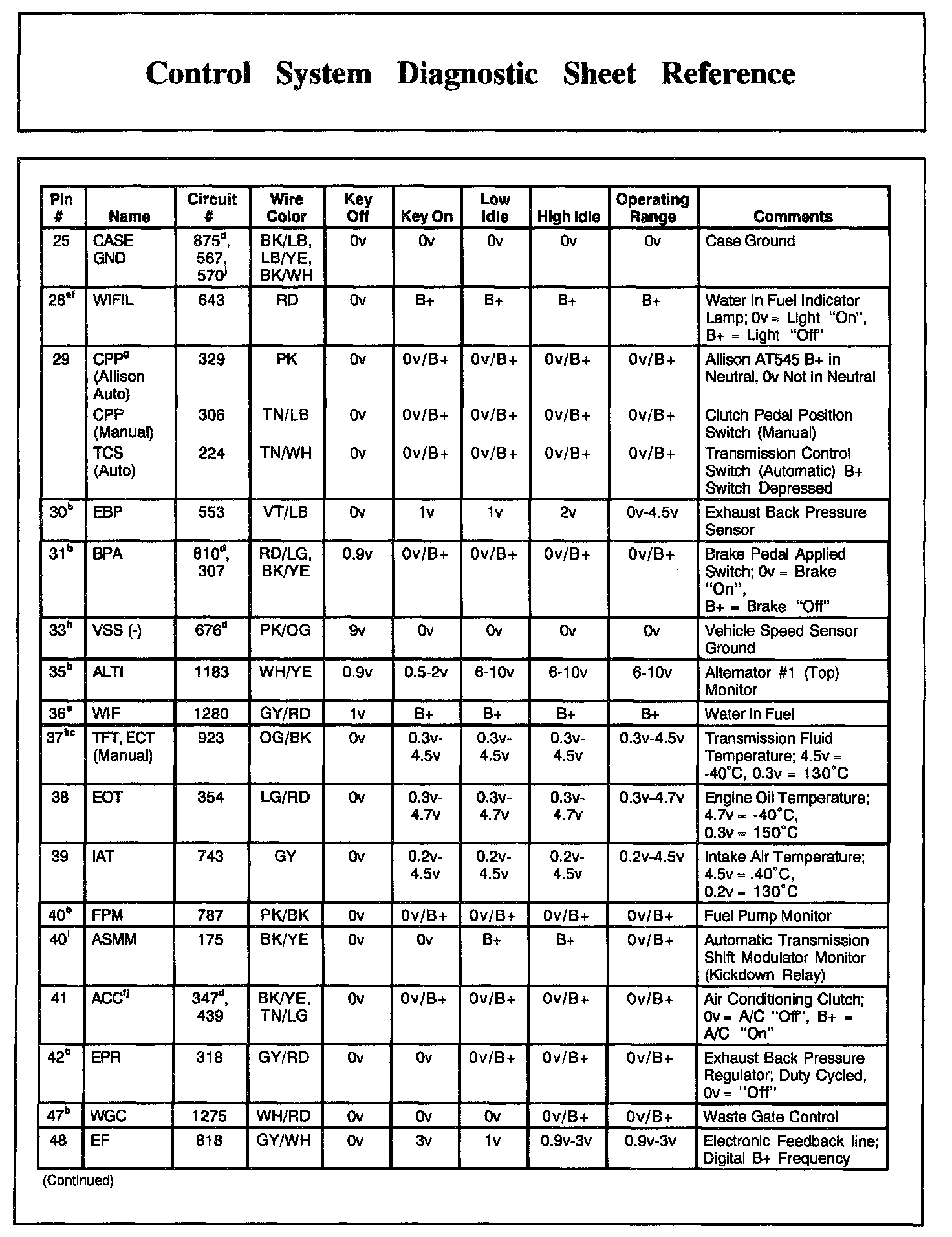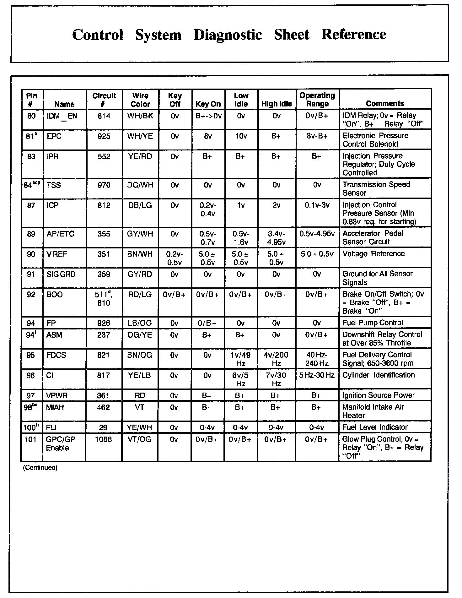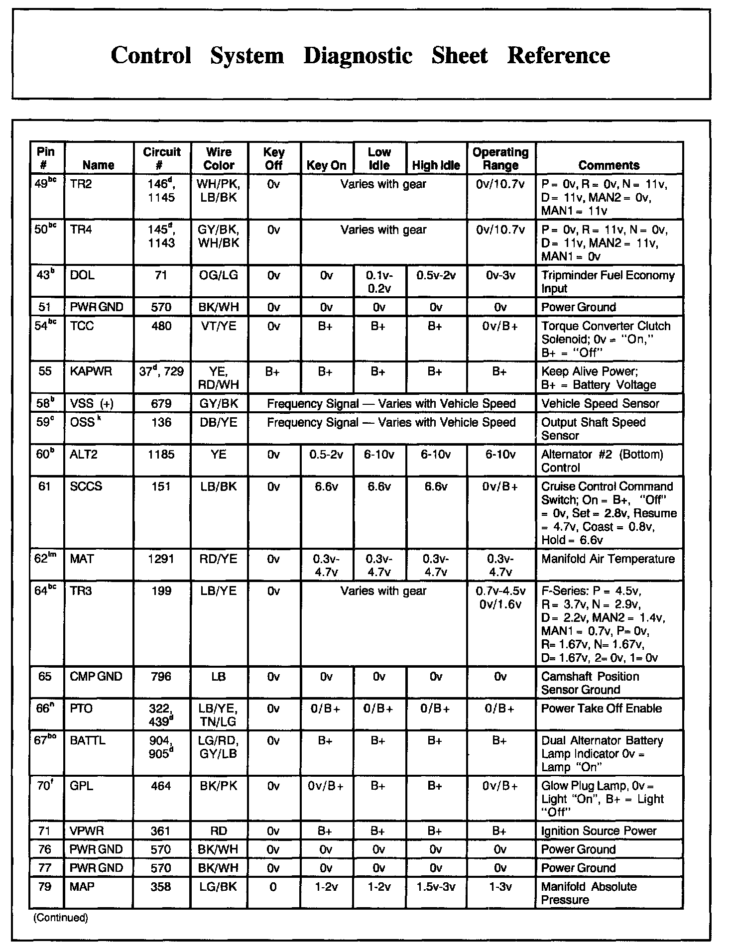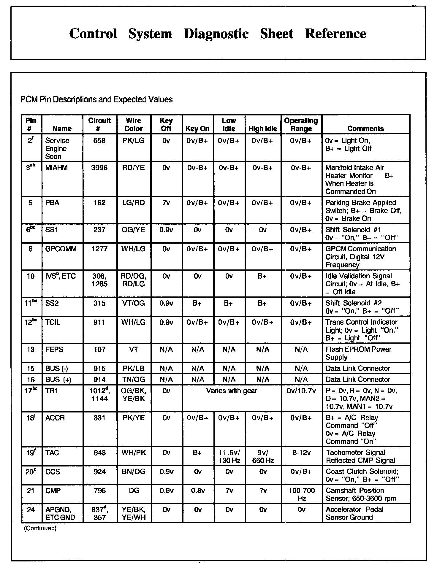 PCM Pin Descriptions And Expected Values, Part 4: