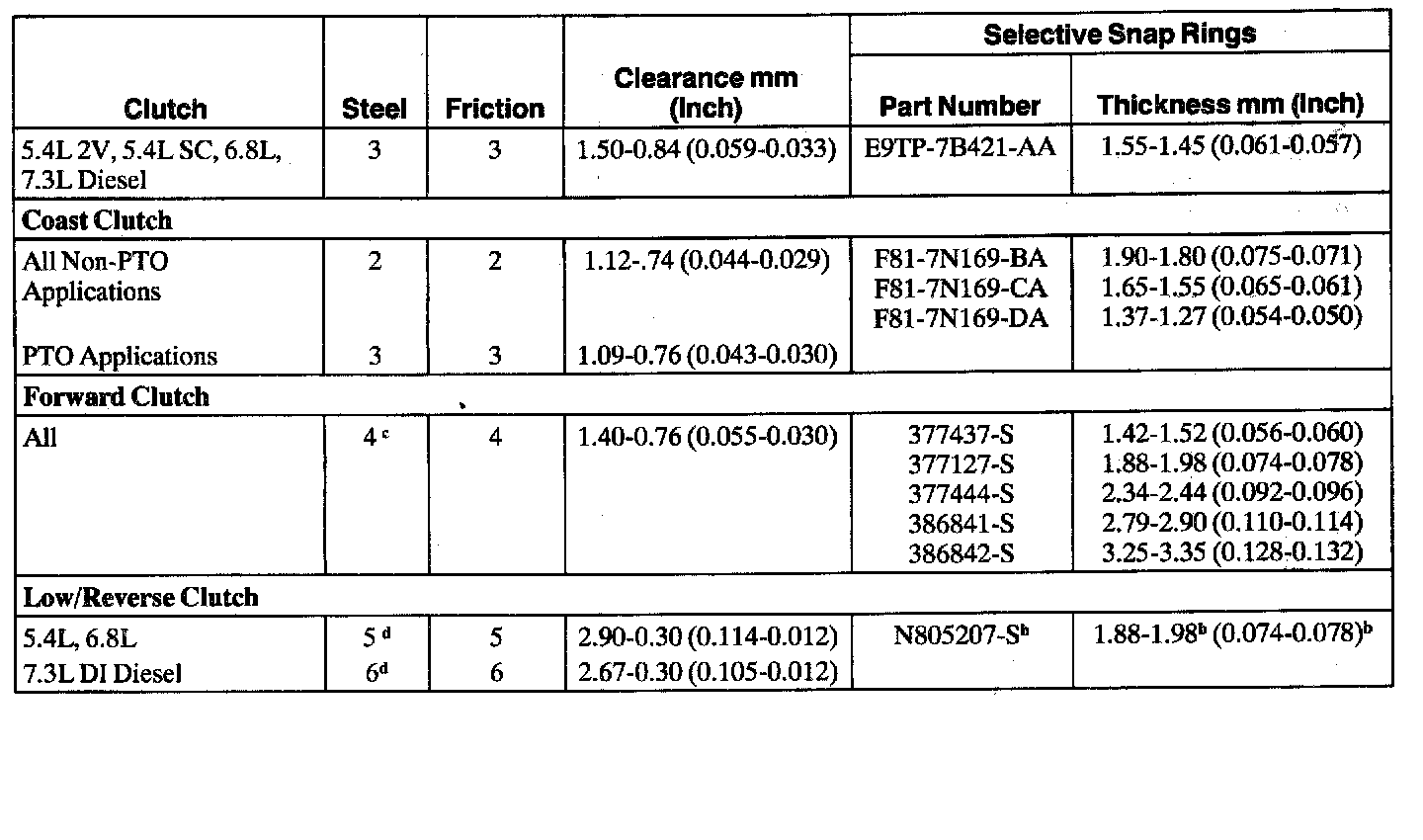 Clutch Plate Usage and Clearance Specifications