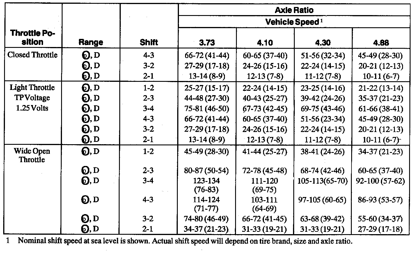Applications Shift Speeds-Approximate* Km/h (MPH) (F-250, F-354, F450, F550, Super Duty with 7.3L DITD)
