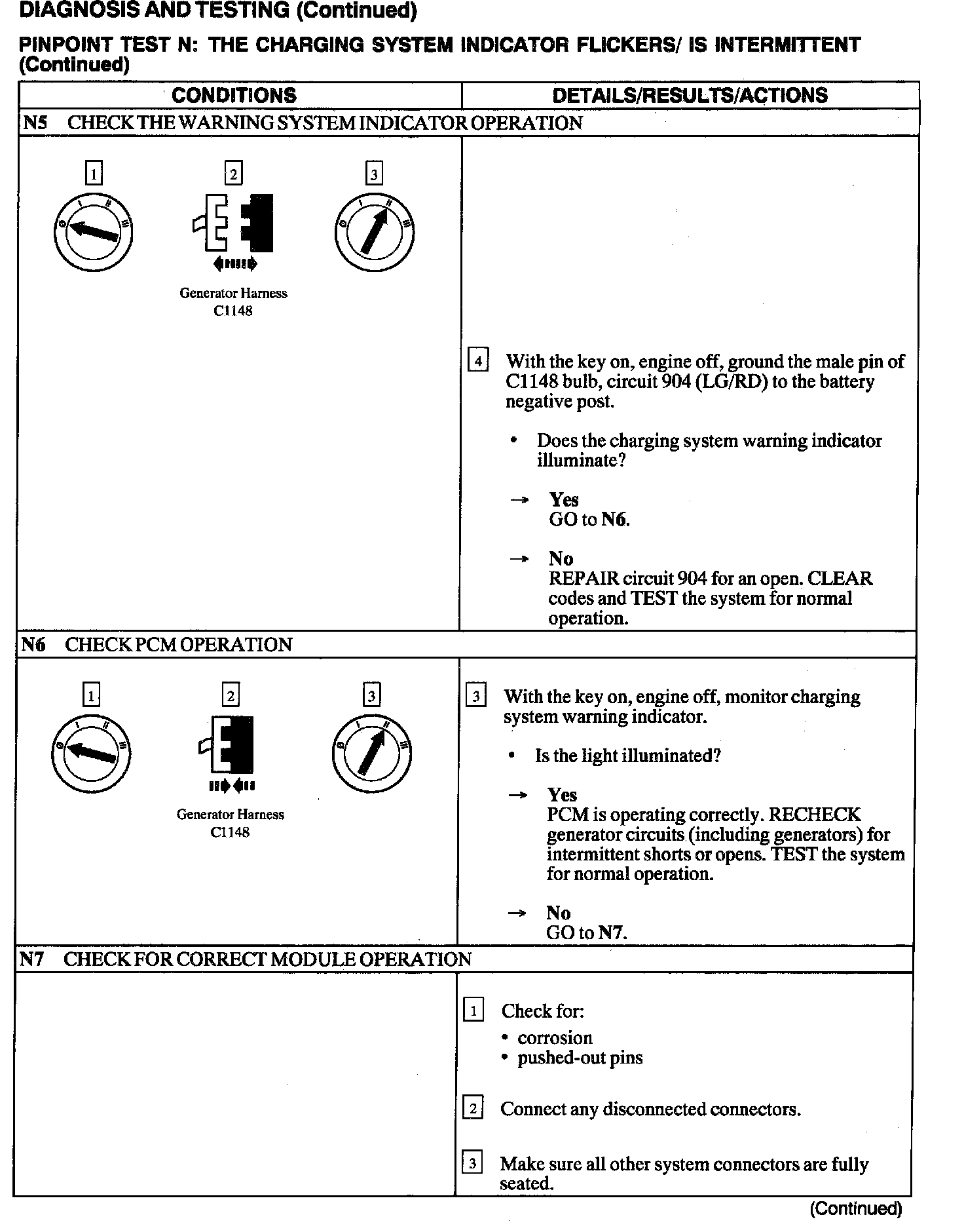 Test N: Charging System Indicator Flickers/ Is Intermittent