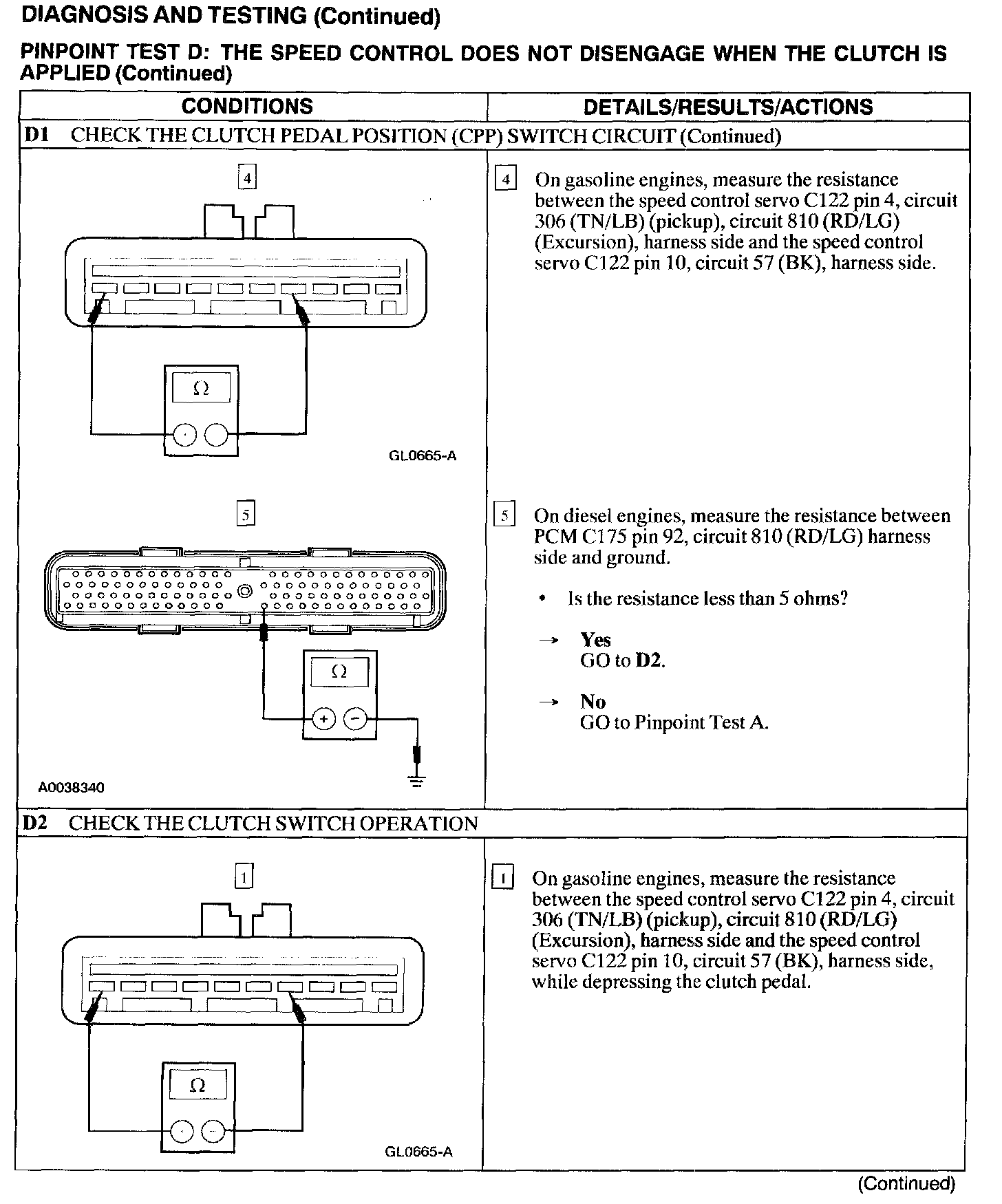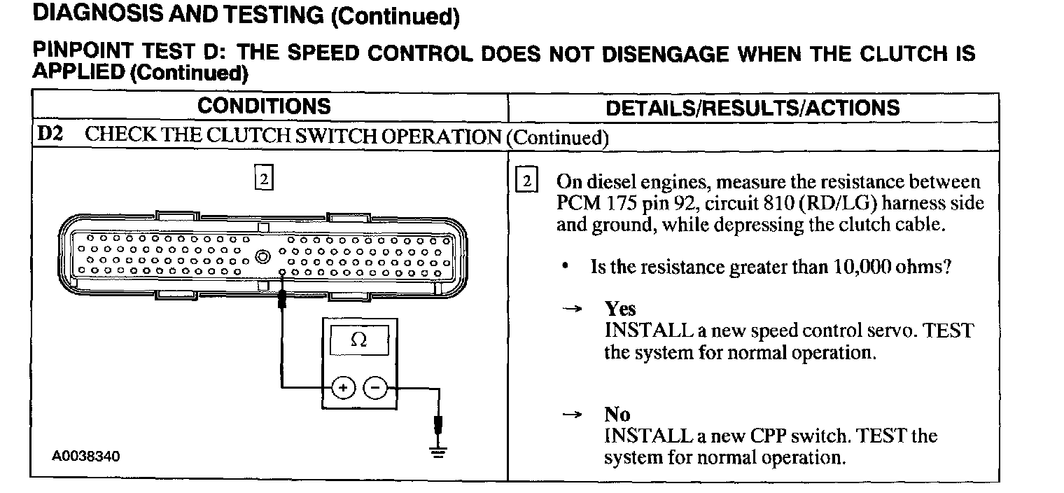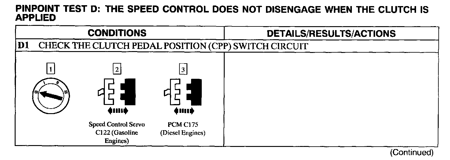 Test D: Speed Control Does Not Disengage With Clutch Applied