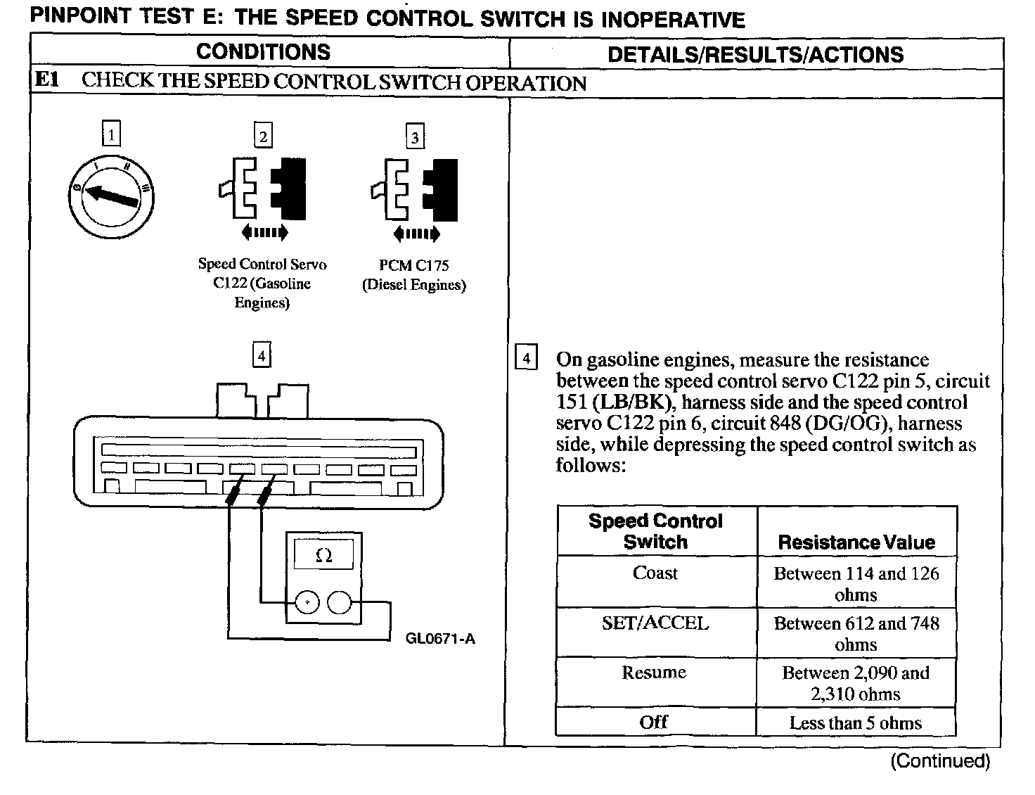 Test E: Speed Control Switch Is Inoperative