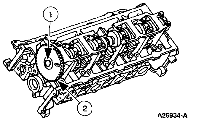 On engines equipped with bolt on sprockets, install the camshaft sprocket (2).