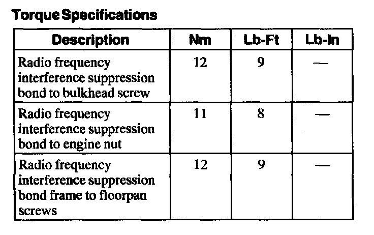 Torque Specifications: