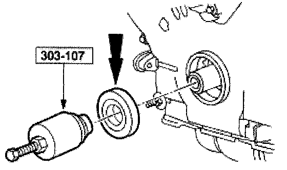 27. Remove and discard the crankshaft pulley bolt. Use the special tool to remove the crankshaft pulley.