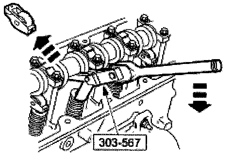 35. Use the special tool to compress the valve springs, and remove the camshaft roller followers.