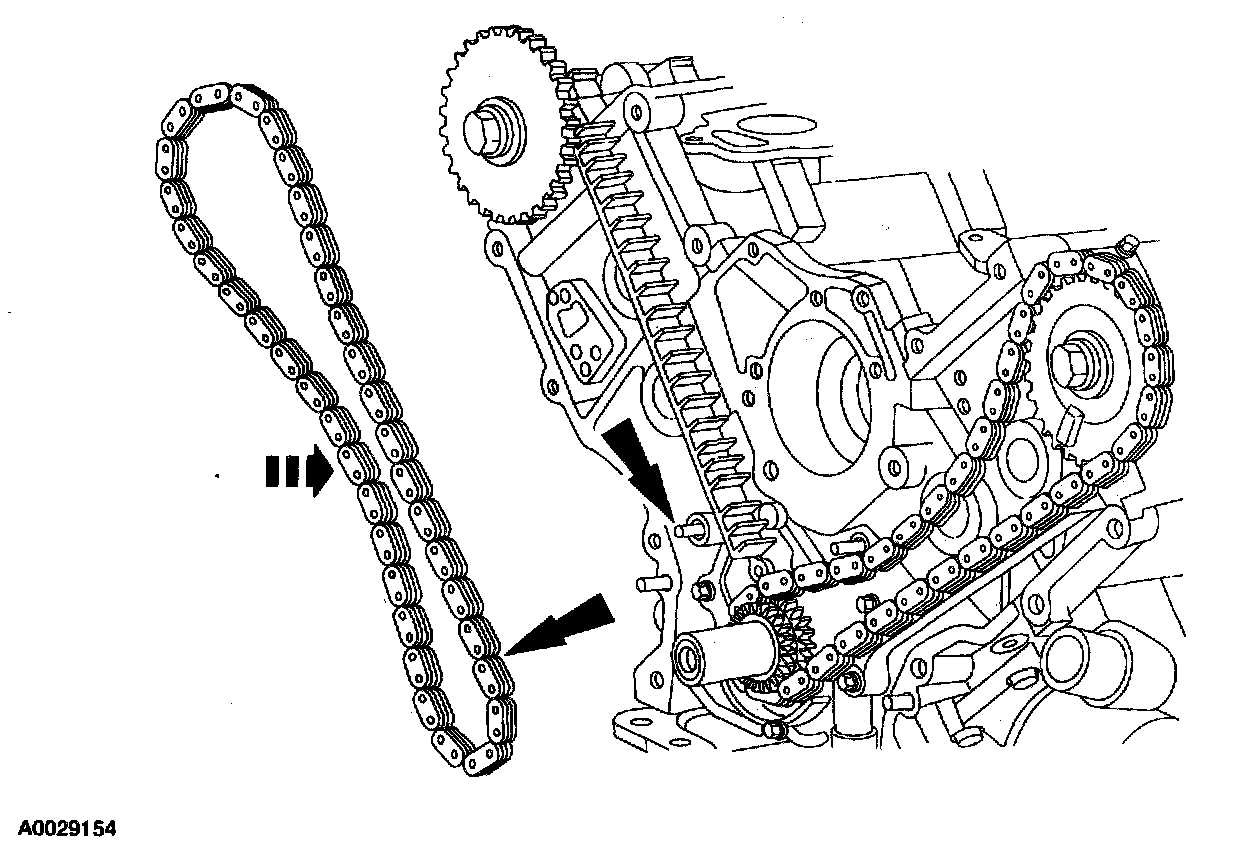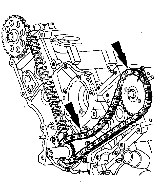 Position the crankshaft sprocket and lower end of the LH (inner) timing chain, aligning the timing marks.