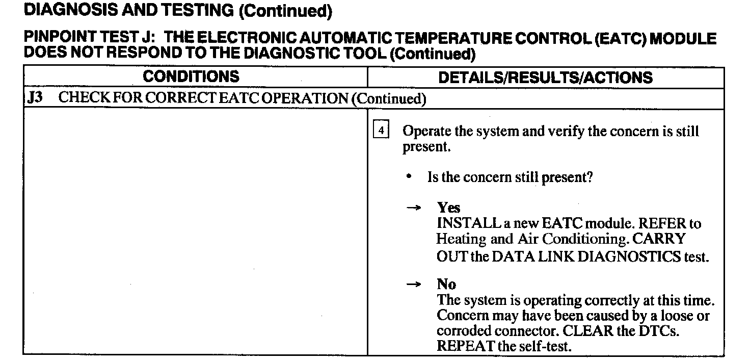 Test J: EATC Module Does Not Respond To The Diagnostic Tool