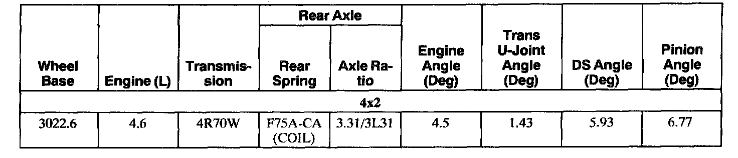 Rear Driveline Angles @ Curb Specifications