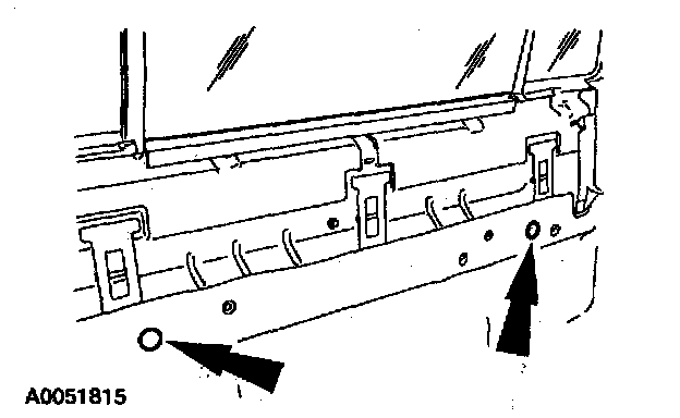 4. Open the luggage compartment trim panel access doors and remove the four pin-type retainers and the luggage compartment trim panel.