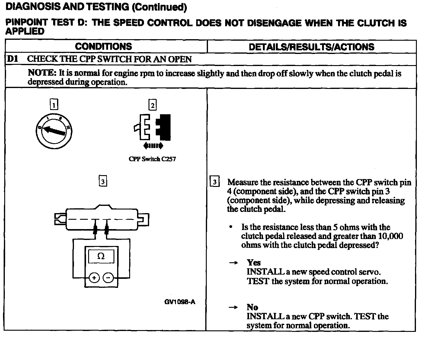 Test D: Speed Control Does Not Disengage W/Clutch Is Applied