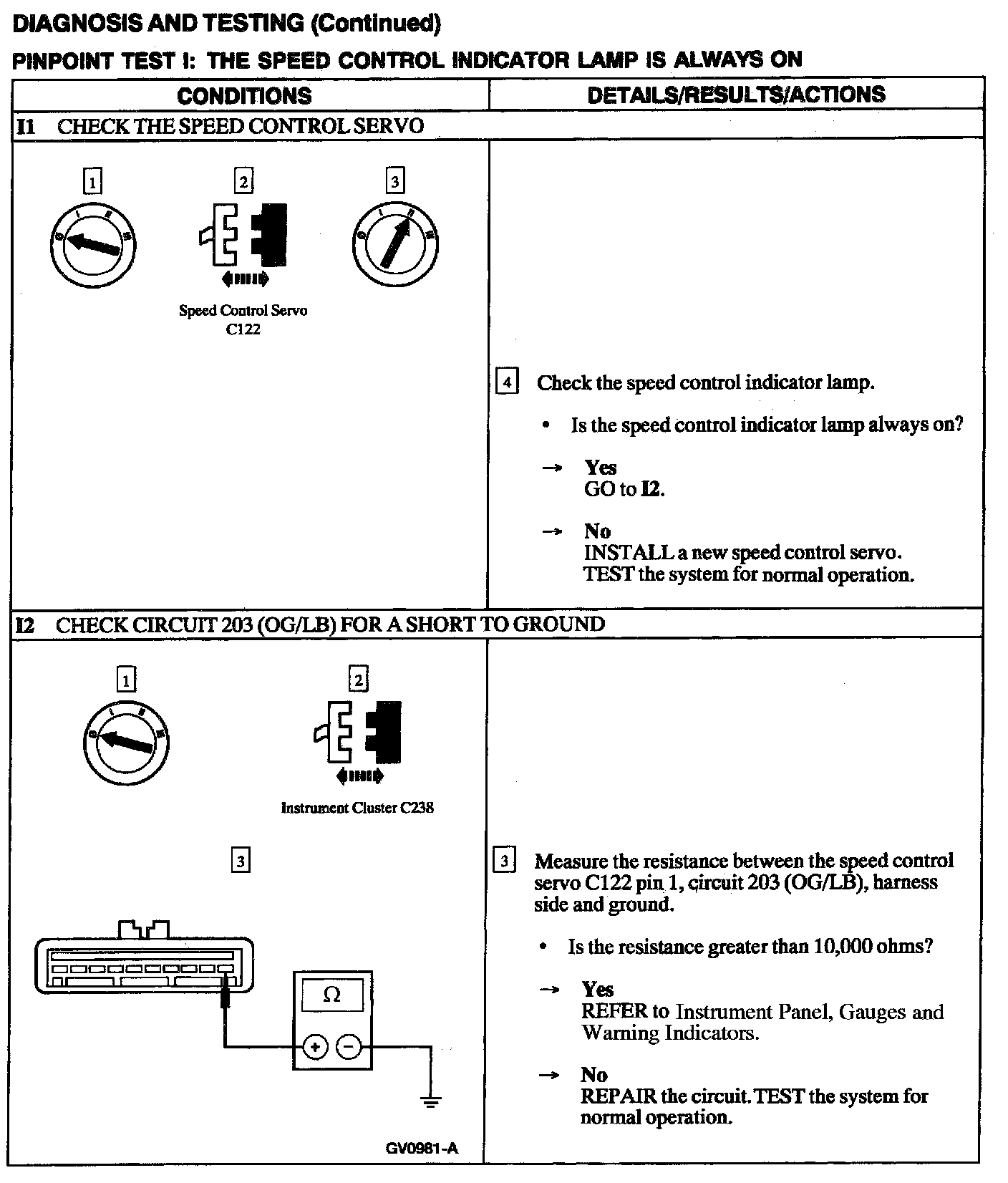 Test I: Speed Control Indicator Lamp Is Always On